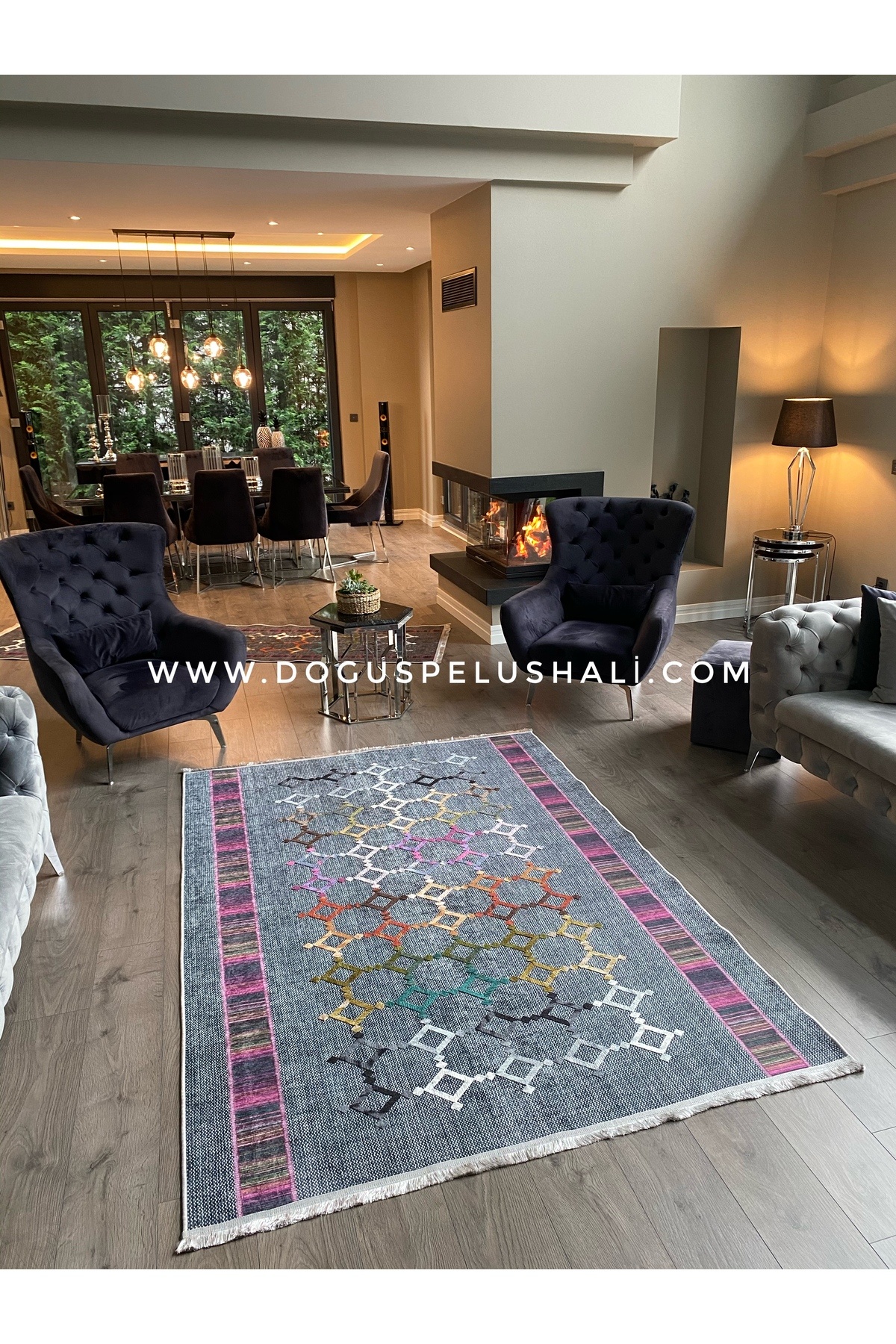 - Yıkama Talimatı : Halılarınızı 30°C’de çamaşır makinesinin hassas yıkama programında, sıkma yapmadan yıkayabilirsiniz. Yıkama sırasında çamaşır suyu ve benzeri ağır kimyasallar kesinlikle kullanılmamalı; yalnızca TSE’ye uygun deterjan ve yumuşatıcı tercih edilmelidir. Yıkama sonrasında halınızı makineden çıkararak silkeleyip tüylerinin aynı yöne gelmesini sağlayabilir ve doğal şekilde kurumaya bırakabilirsiniz. Halınız çırpılmamalı, dövülmemeli ve temizlikte elektrik süpürgesinin fırçasız uçları kullanılmalıdır. Halı üzerinde bulunan sehpa, koltuk gibi eşyaların iz yapmaması için bu eşyaların konumu belirli aralıklarla değiştirilmelidir; temas eden bölgeler yine süpürge cihazının fırçasız ucu ile temizlenmelidir. Halıyı yere sermeden önce zeminin tamamen kuru olduğundan emin olunmalı; kesinlikle ıslak veya nemli zeminlerde kullanılmamalıdır. Halınızın uzun ömürlü olması için belirtilen yıkama talimatlarına uyulması ve halının düzenli olarak, ayda en az bir kez yıkanması tavsiye edilir.