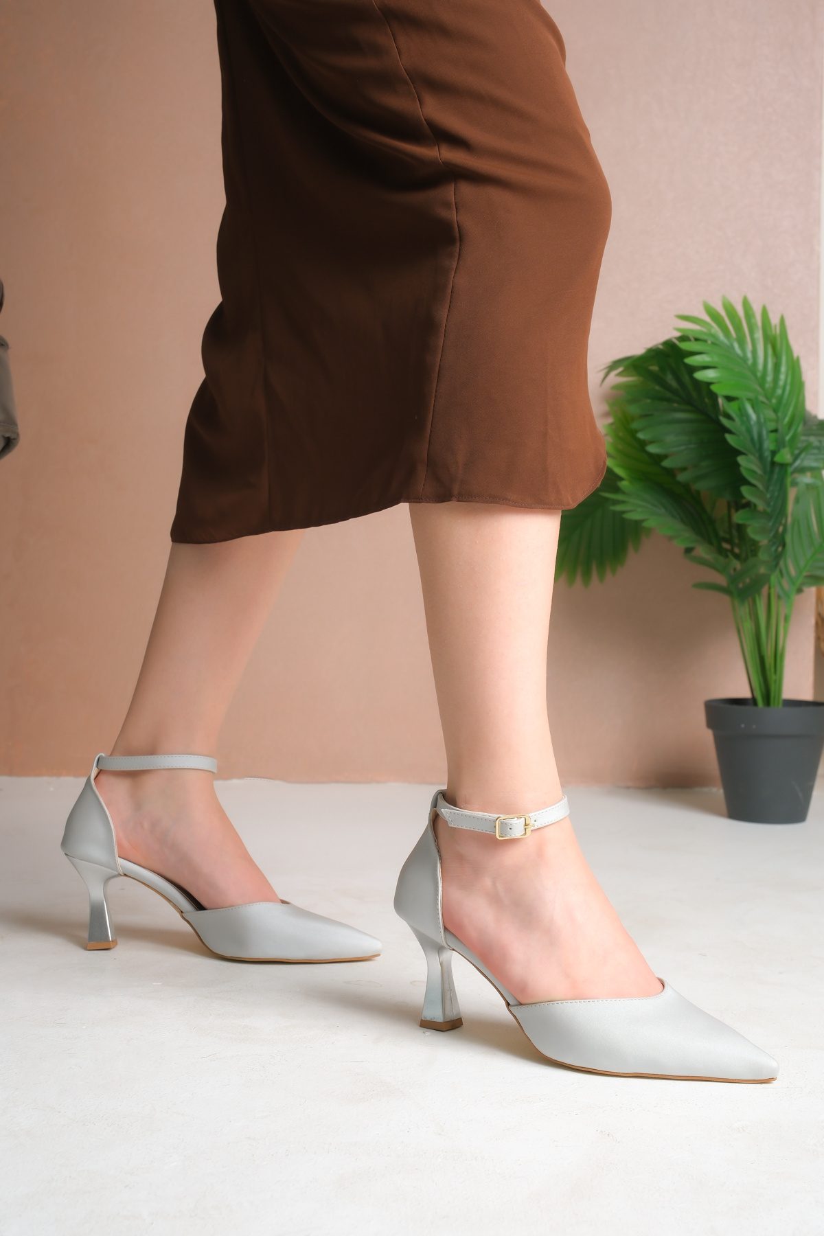 Arkası Kapalı Toka Detaylı İnce Topuklu Gümüş Rengi Kadın Abiye Ayakkabı Arkası Kapalı Toka Detaylı İnce Topuklu Gümüş Rengi Kadın Abiye Ayakkabı KOR02 40