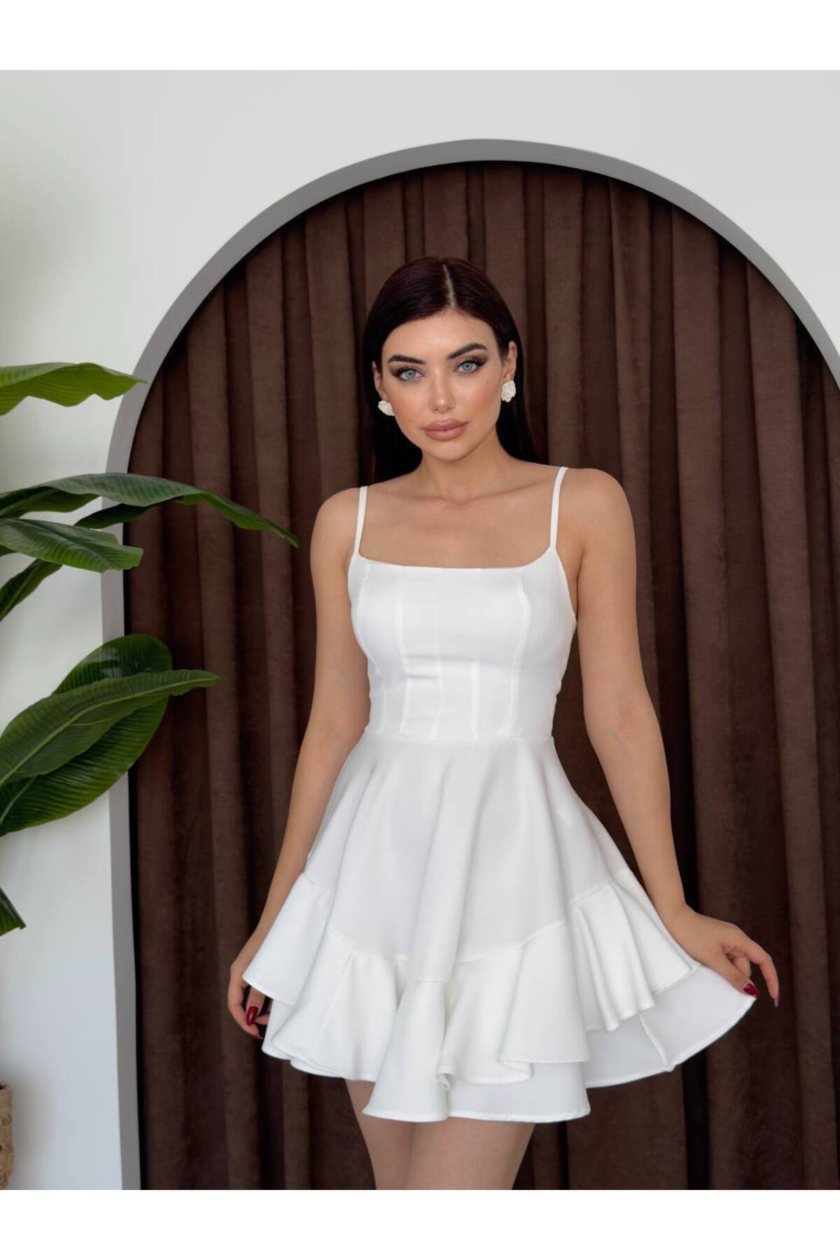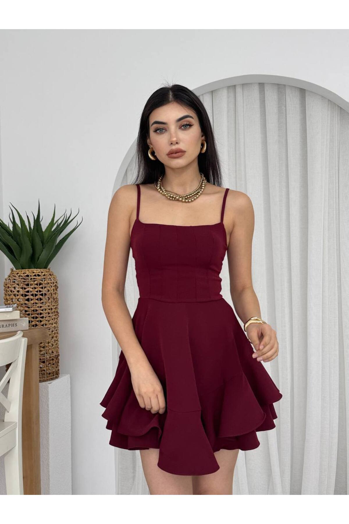 Eteği Volanlı Mini Kulplu Elbise Eteği Volanlı Mini Kulplu Elbise BER0035 L