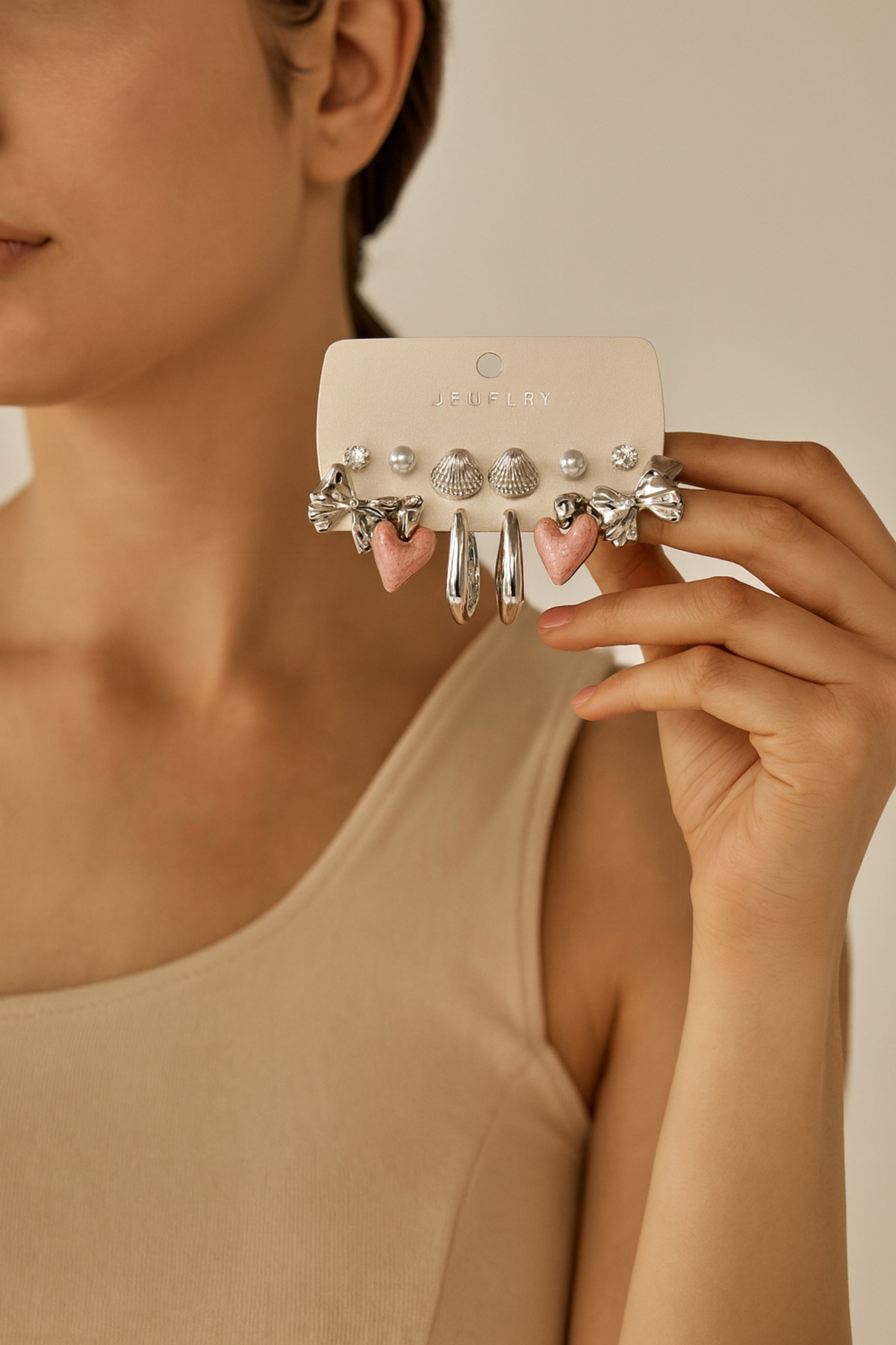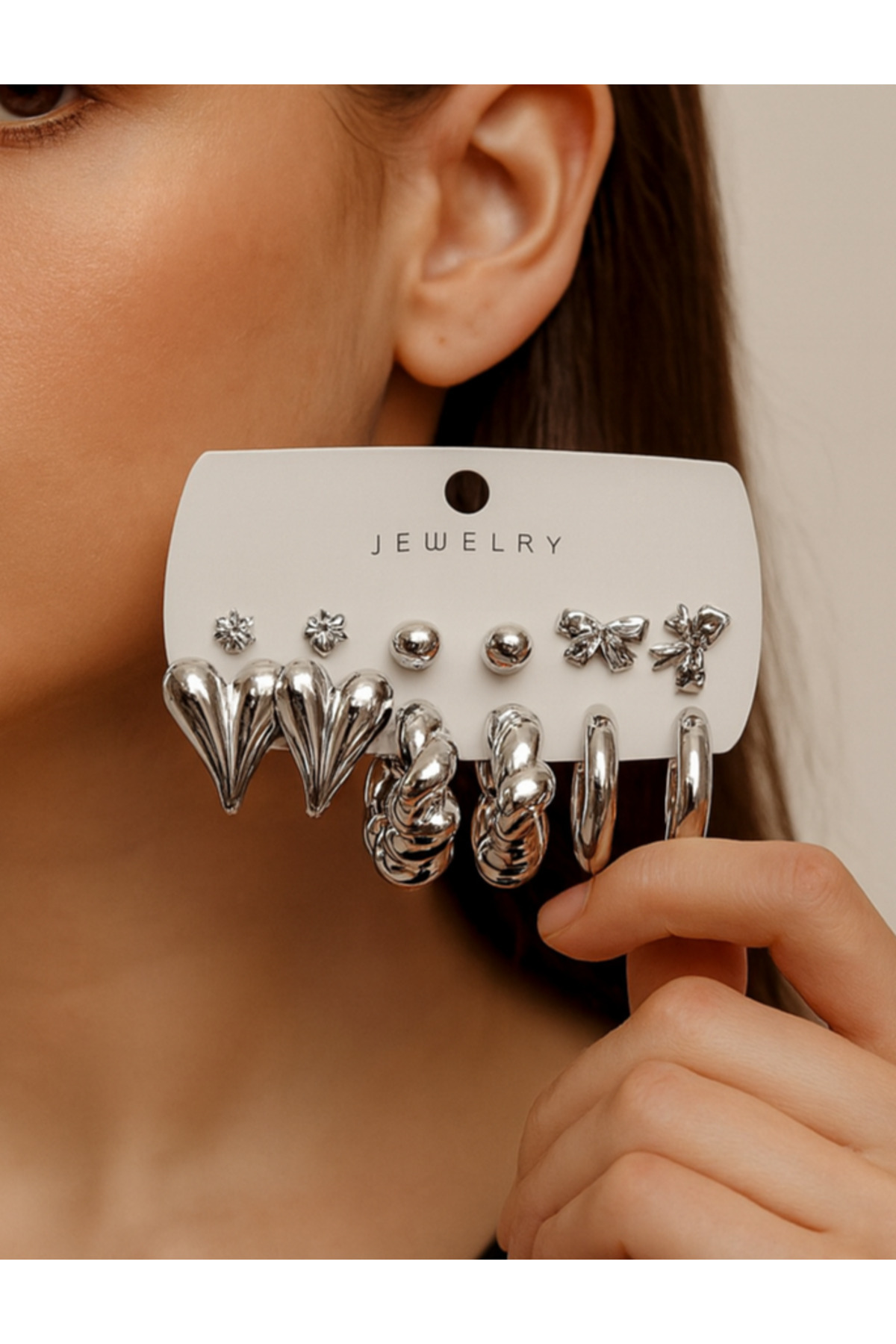 Kadın 12'li Kombin Halka Küpe İnci 6 Çift Set Çoklu Küpe Kadın 12'li Kombin Halka Küpe İnci 6 Çift Set Çoklu Küpe MRK-KONBINSET232F تک سایز