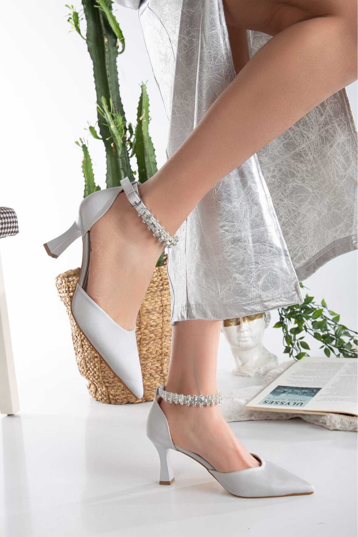 Taş Detaylı Arkası Kapalı Bilekten Taş Dolama İnce Topuk GÜMÜŞ Rengi Kadın Abiye Ayakkabı Taş Detaylı Arkası Kapalı Bilekten Taş Dolama İnce Topuk GÜMÜŞ Rengi Kadın Abiye Ayakkabı KOR08 40