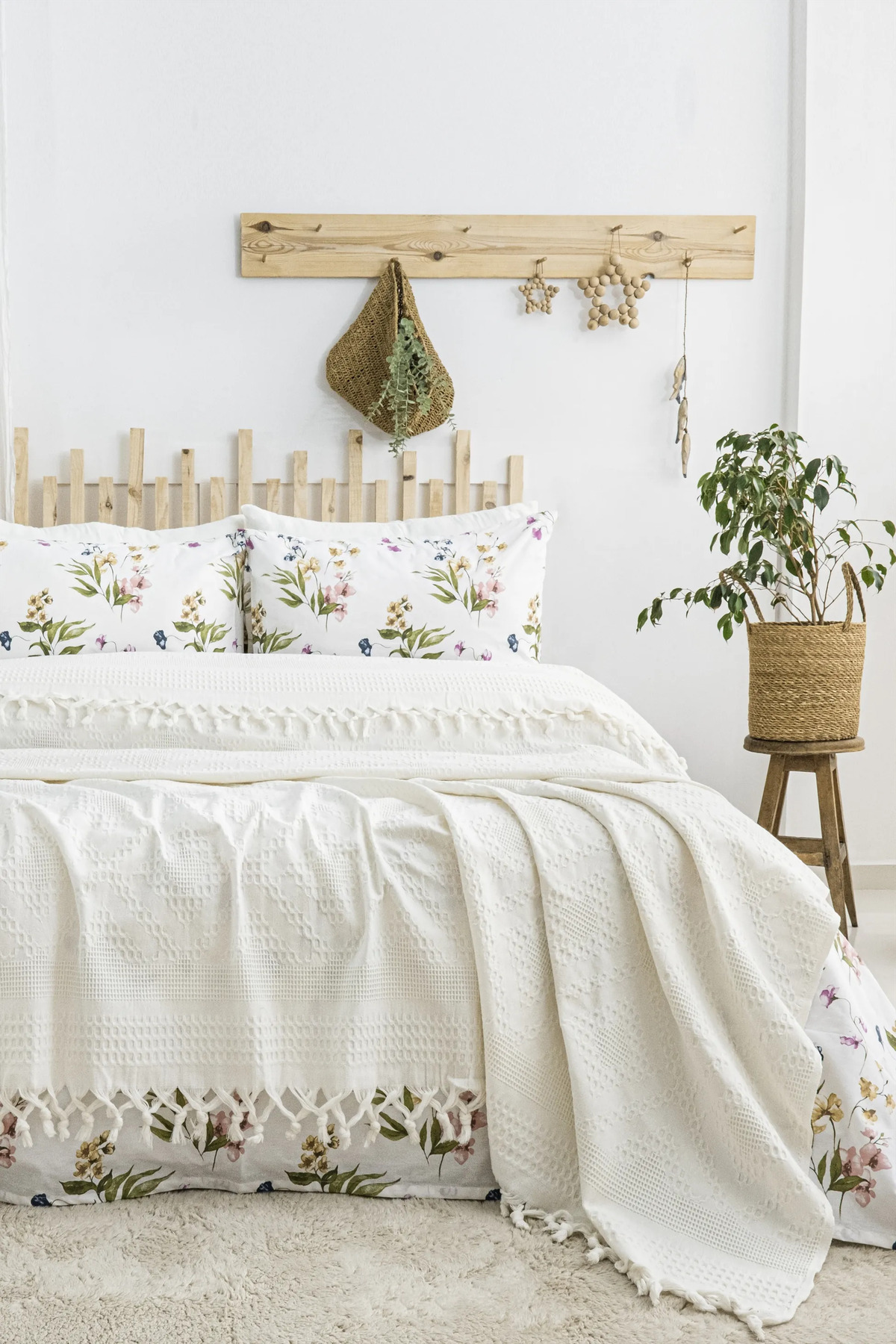 Viola Pike Takımı, %100 Pamuk Jakarlı Püsküllü Pike Seti, Çiçek Desenli Çarşaf ve Yastık Kılıfı Seti Viola Pike Takımı, %100 Pamuk Jakarlı Püsküllü Pike Seti, Çiçek Desenli Çarşaf ve Yastık Kılıfı Seti VIOLA تک سایز