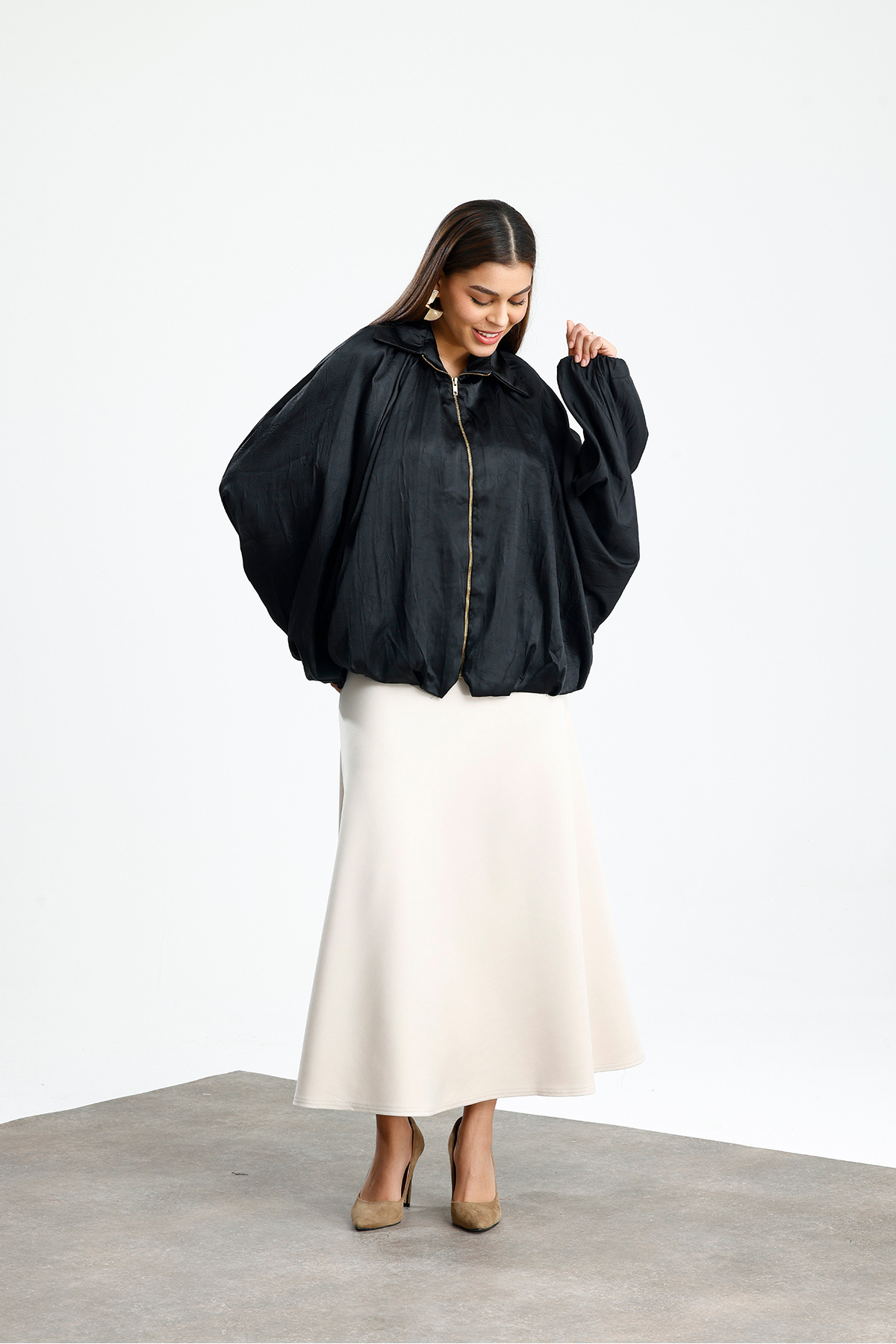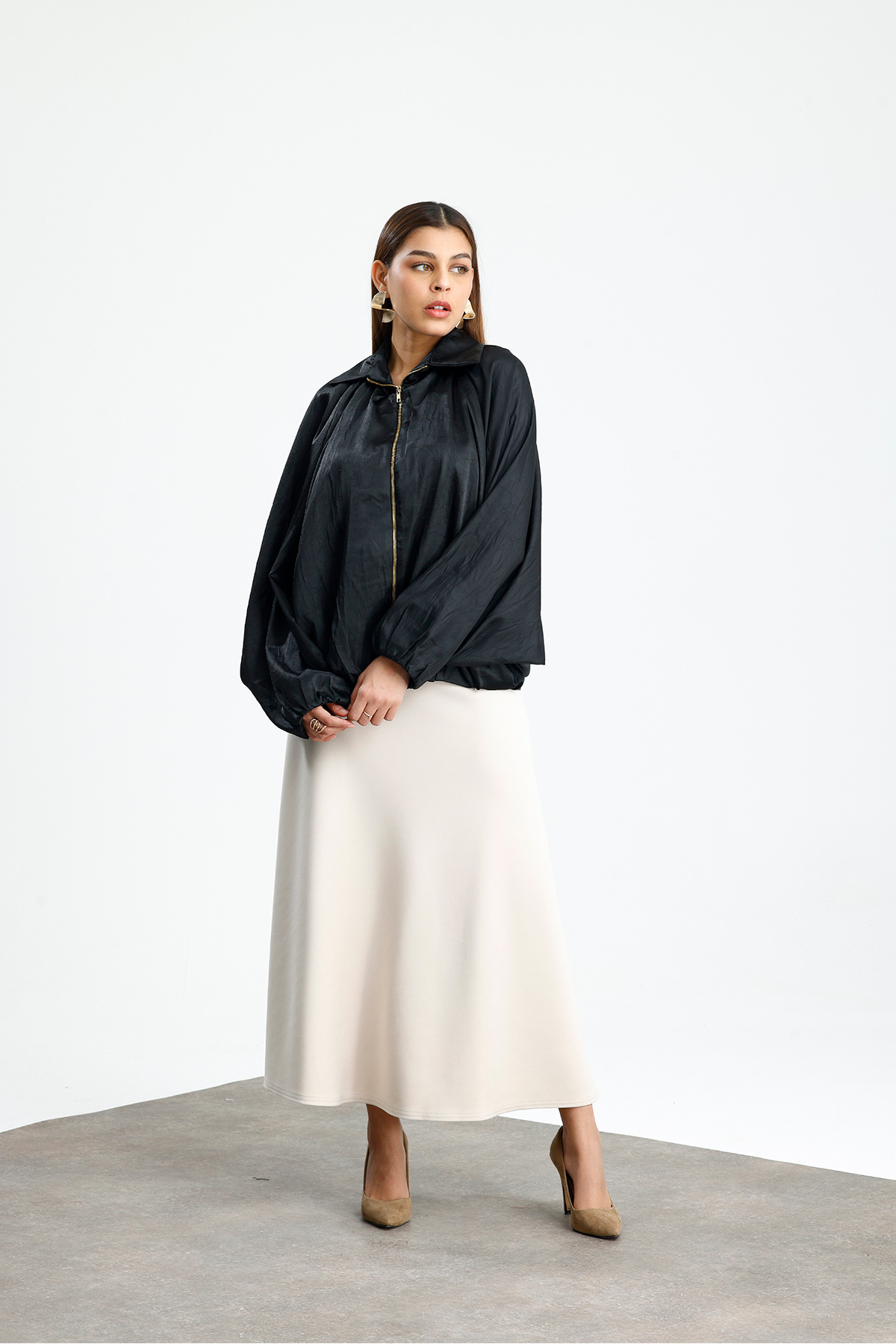 Kadın Oversize Yarasa Kesim Gold Fermuar Detaylı Kraş Saten Gömlek Kadın Oversize Yarasa Kesim Gold Fermuar Detaylı Kraş Saten Gömlek voısaten L