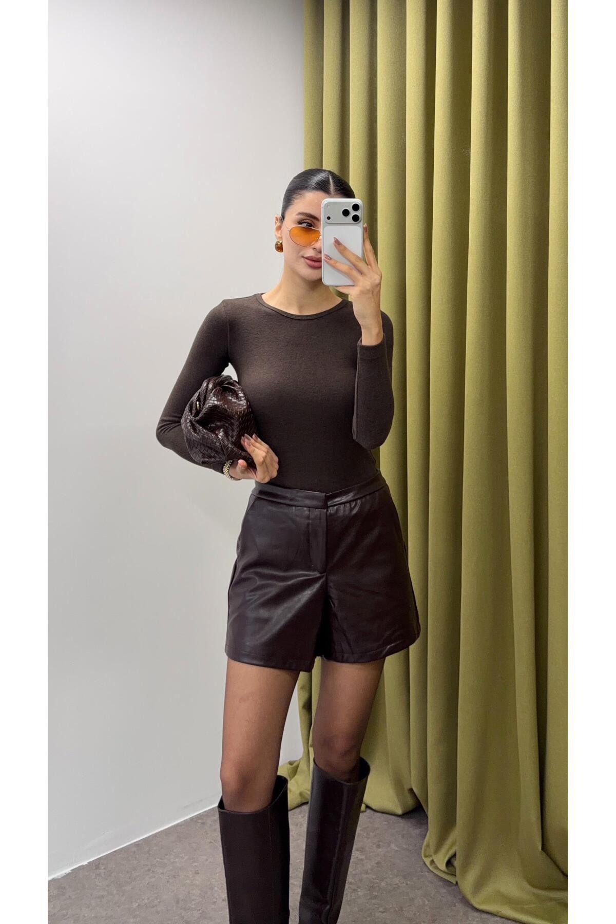 Bordo Deri Şort Bordo Deri Şort 12631 L