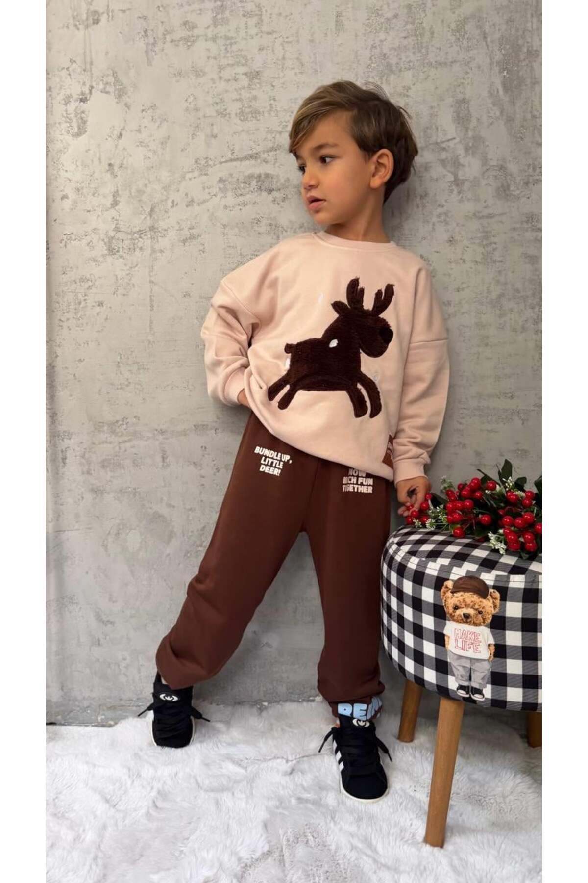 Erkek Çocuk Geyik Baskılı 3 İplik Pamuklu Kumaş Alt Üst Takım Erkek Çocuk Geyik Baskılı 3 İplik Pamuklu Kumaş Alt Üst Takım MNL-TKM-0760 7-8 Yaş