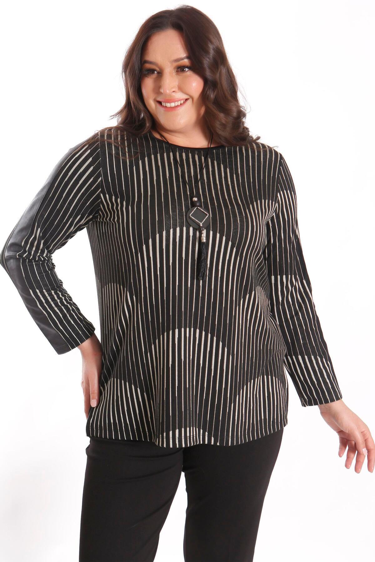 Trend42plus Büyük Beden Kollar Deri Şeritli Siyah Bluz Trend42plus Büyük Beden Kollar Deri Şeritli Siyah Bluz 20682 48