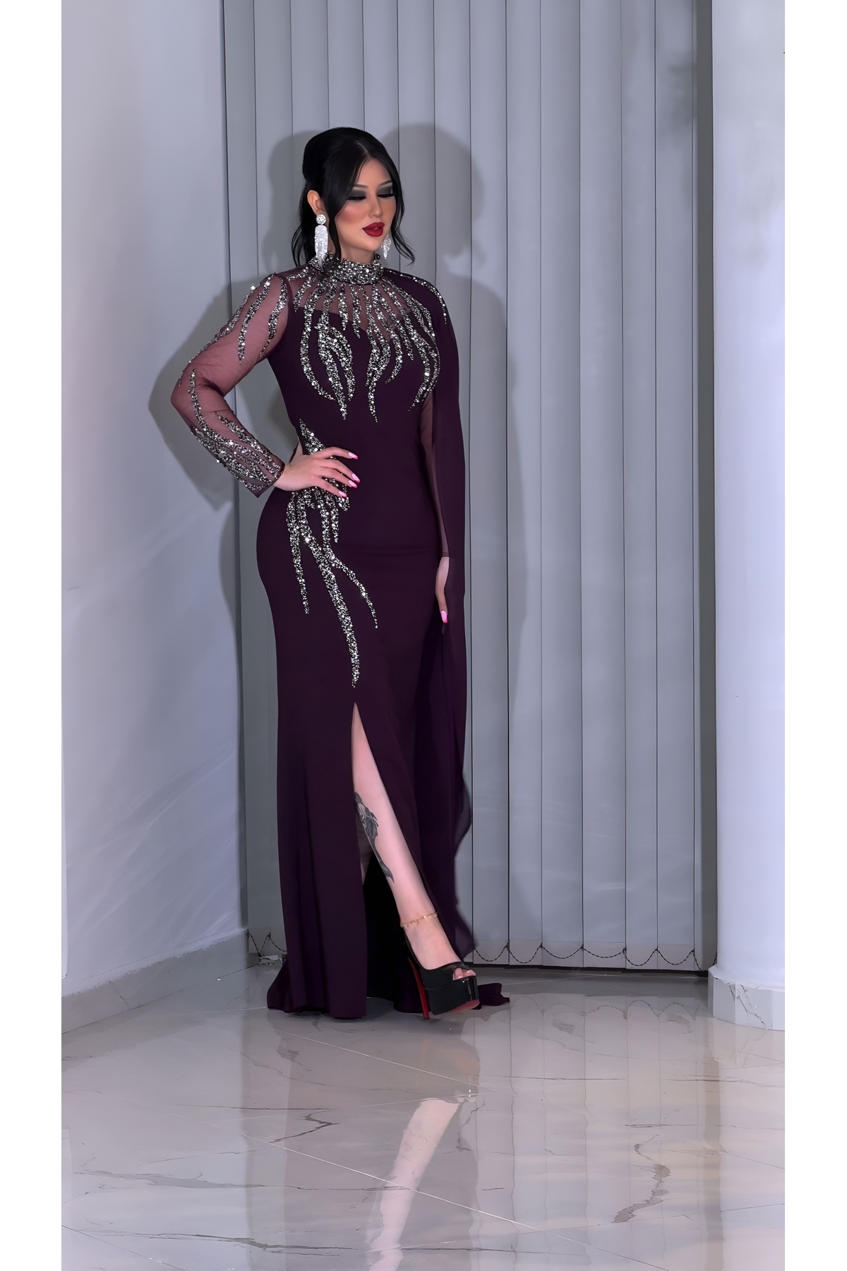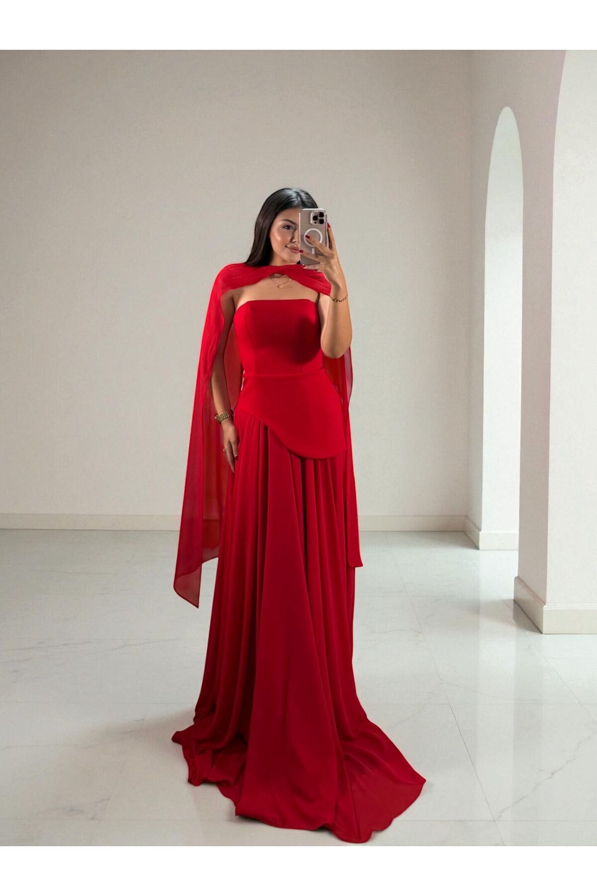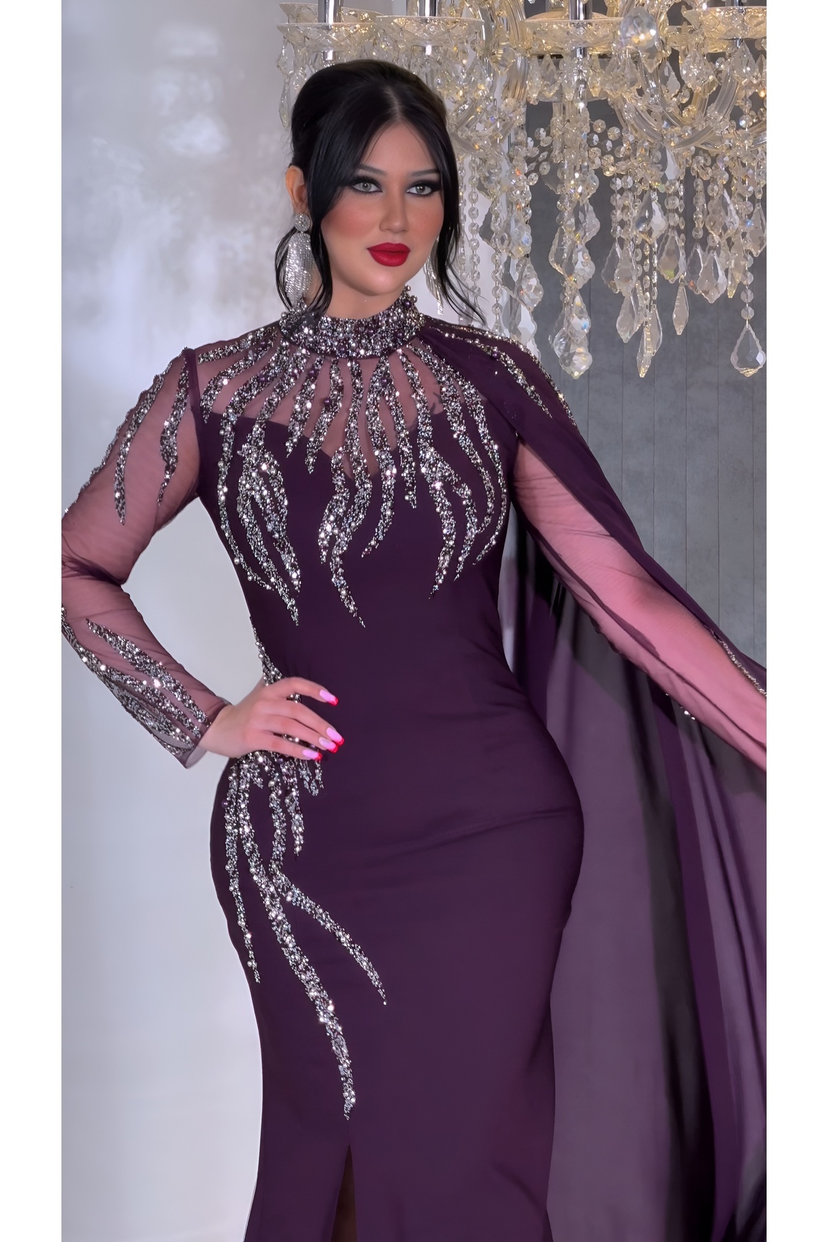 Şifon Pelerin Detaylı Taş İşlemeli Yırtmaçlı Abiye Şifon Pelerin Detaylı Taş İşlemeli Yırtmaçlı Abiye 990518 54