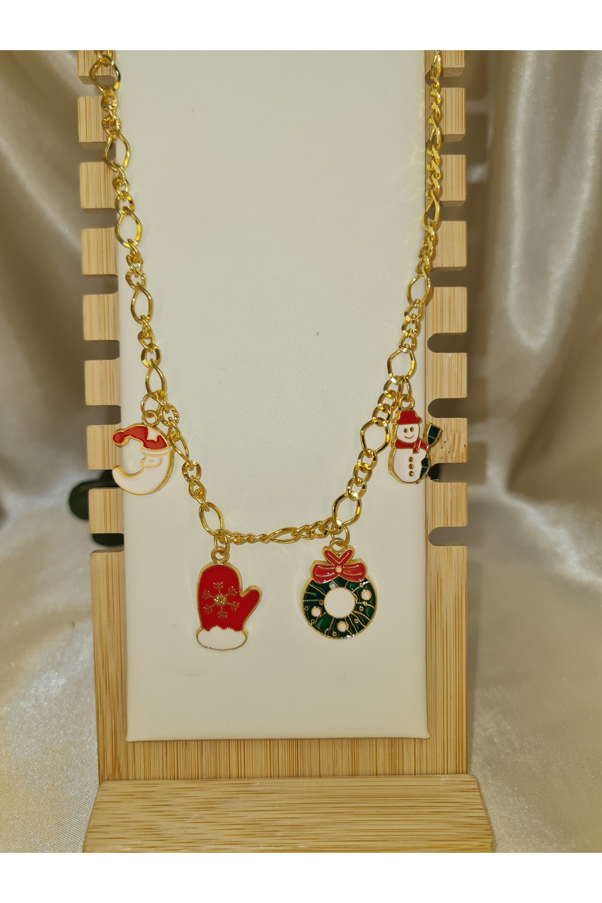 Yılbaşı Temalı Charm Kolye – Noel Baba, Eldiven, Çelenk ve Kardan Adam Figürlü Altın Renk Zincir Yılbaşı Temalı Charm Kolye – Noel Baba, Eldiven, Çelenk ve Kardan Adam Figürlü Altın Renk Zincir yılbasıkolye1 45 cm