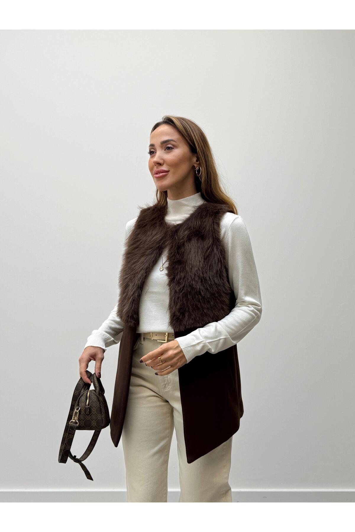 Fermuarlı, Yumuşak Dokulu Yapay Kürk Kadın Yelek Fermuarlı, Yumuşak Dokulu Yapay Kürk Kadın Yelek F2046 L