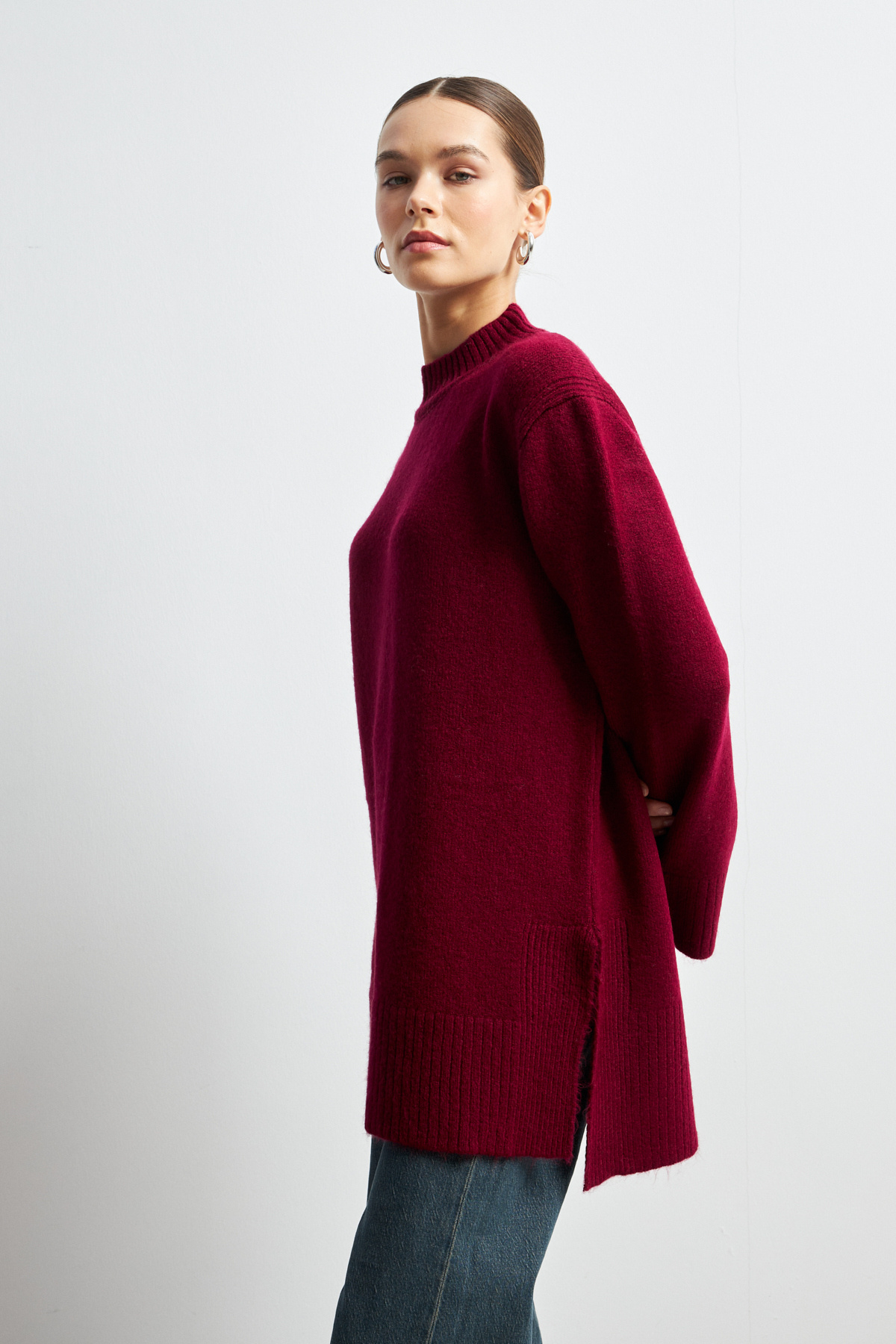 Kadın Bordo Balıkçı Yaka Yumuşak Dokulu Basic Kazak Kadın Bordo Balıkçı Yaka Yumuşak Dokulu Basic Kazak TRK01 Standart