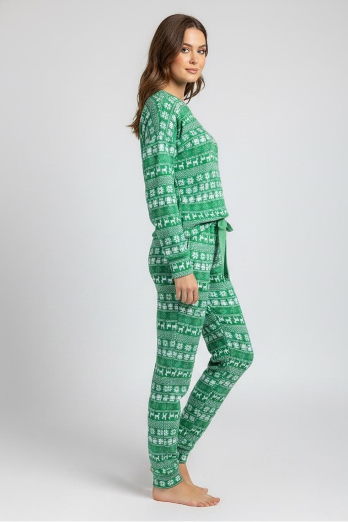 Geyik ve Kristal Kar Taneleri Desenli Yılbaşı Temalı Pijama Takımı Geyik ve Kristal Kar Taneleri Desenli Yılbaşı Temalı Pijama Takımı 8914 XL