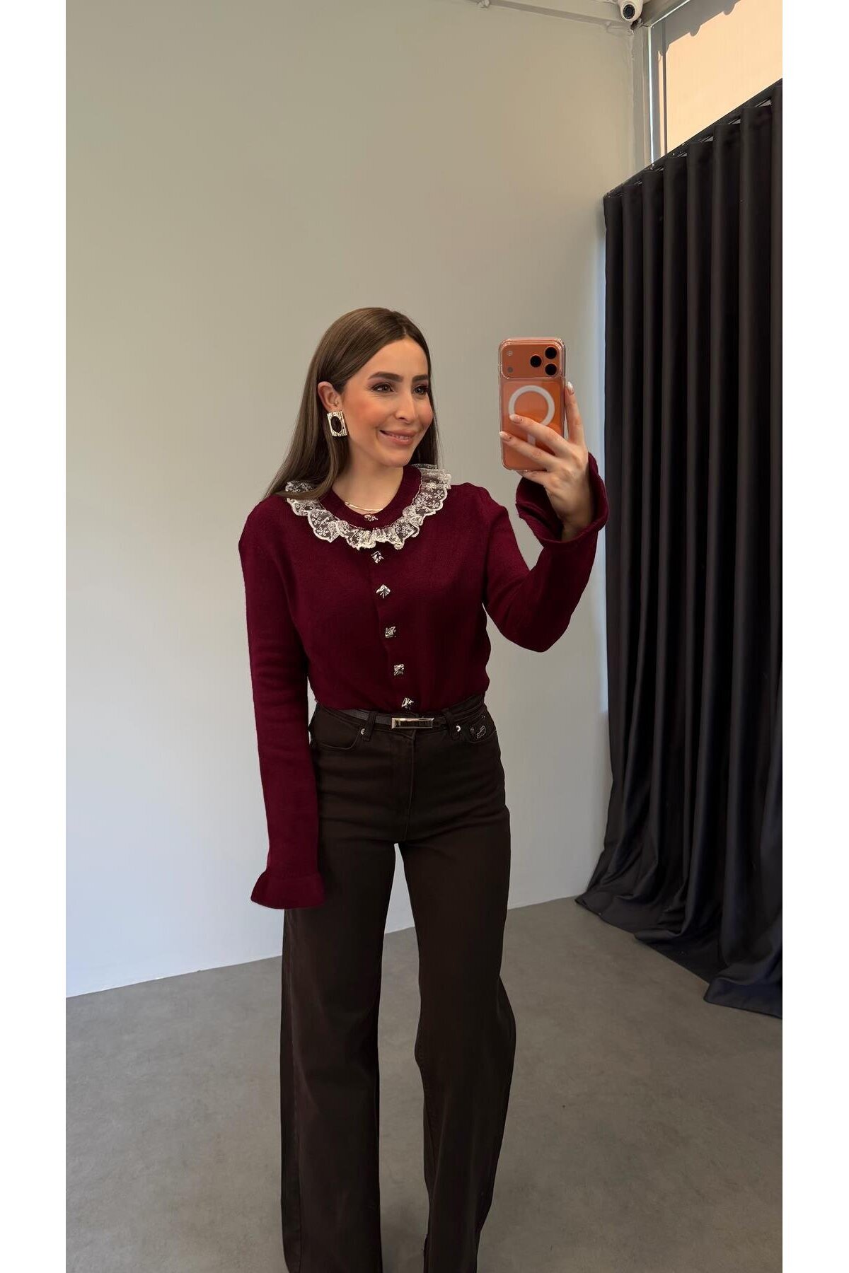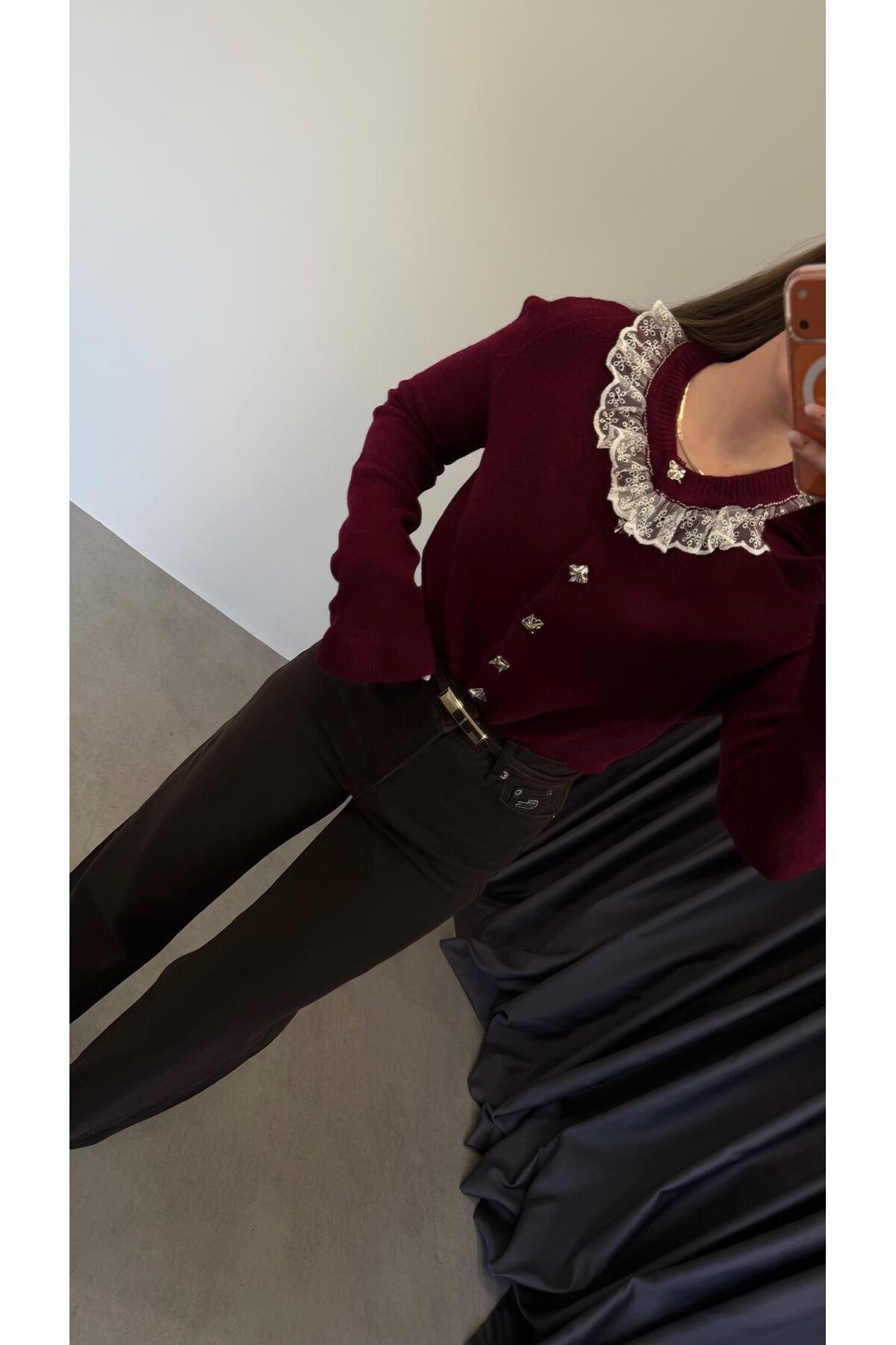 Yaka Dantelli Petit Triko Hırka Bordo Yaka Dantelli Petit Triko Hırka Bordo TYCD00BC251275F0318EFC200 Standart