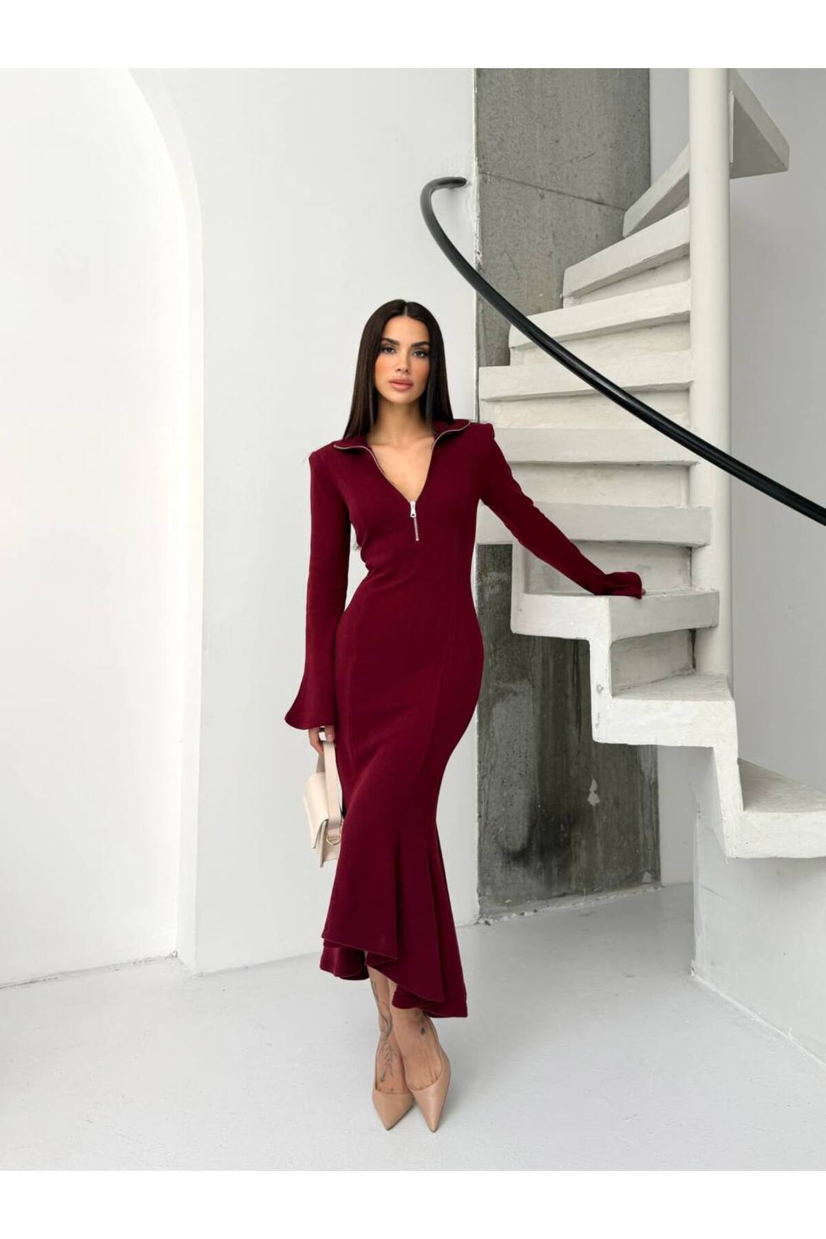 Fermuar Detaylı Volanlı Likralı Elbise Fermuar Detaylı Volanlı Likralı Elbise GKEL635-988-01 L