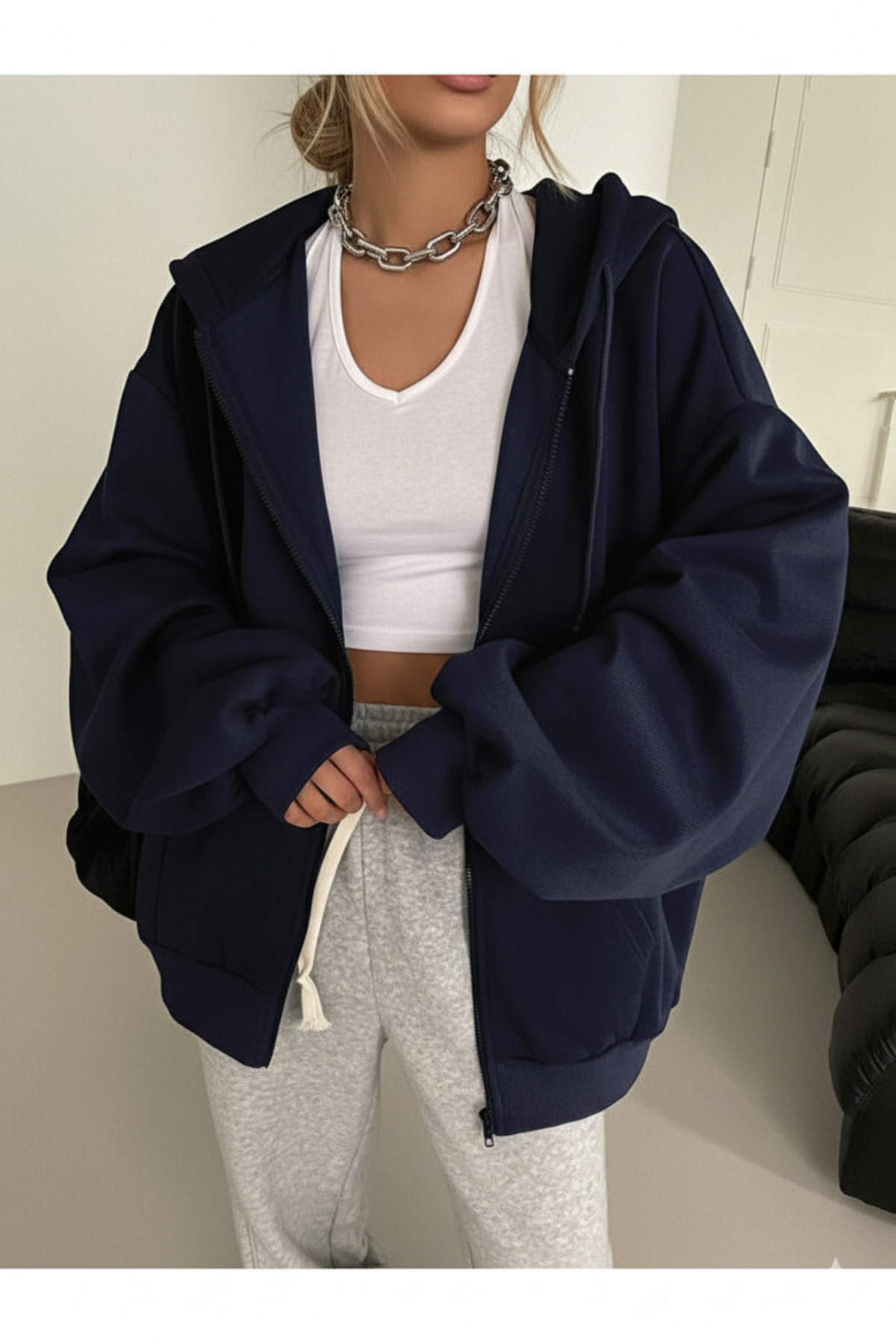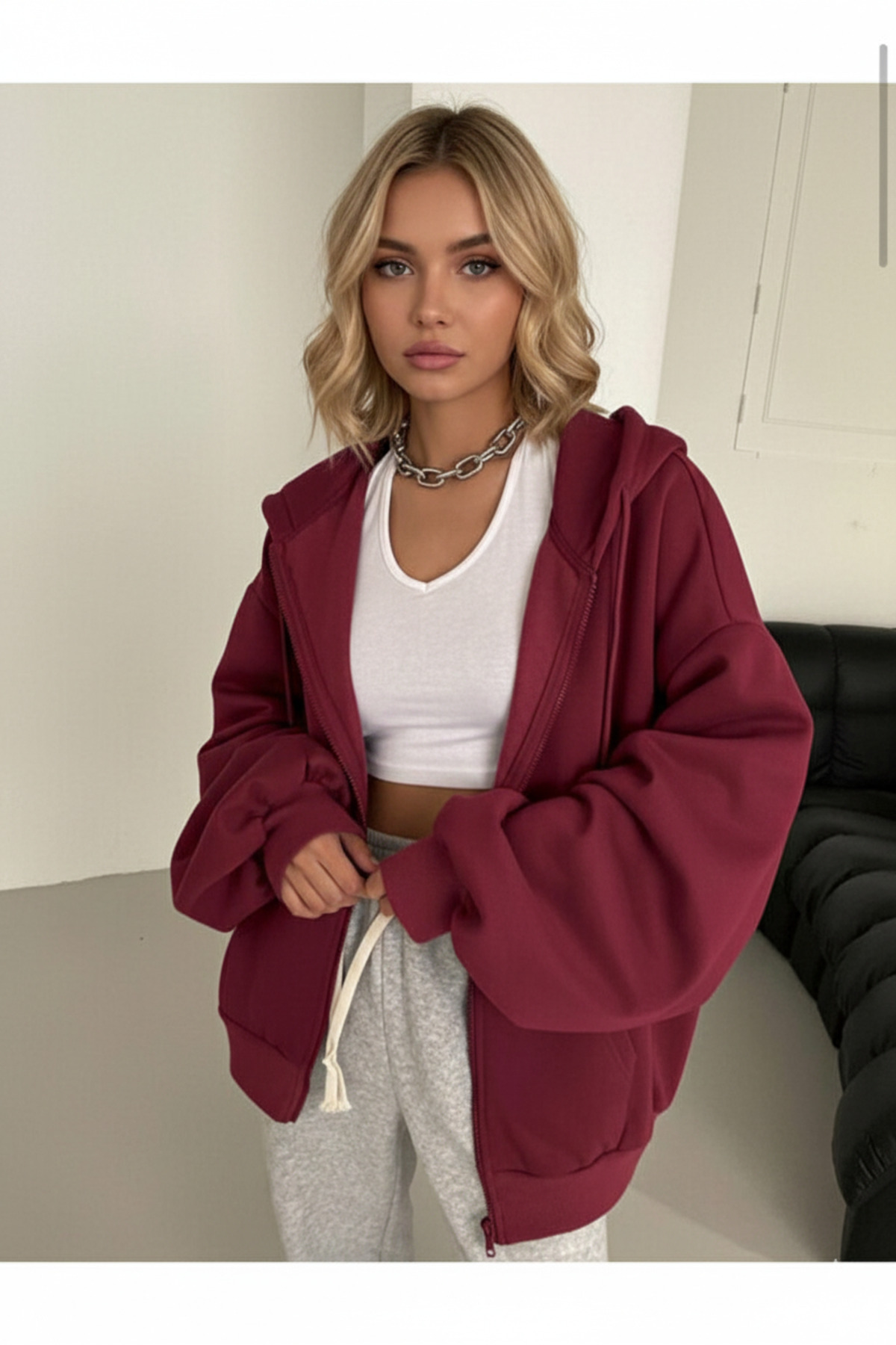 Kadın Kapüşon Detay Fermuarlı Balon Kol Hırka Kadın Kapüşon Detay Fermuarlı Balon Kol Hırka maviş36 XL