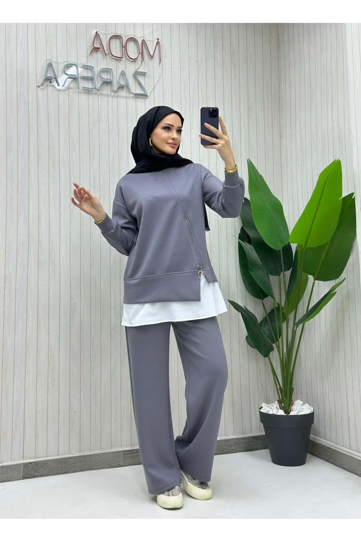 Tesettür Fermuarlı Tunik Pantalon Takım Tesettür Fermuarlı Tunik Pantalon Takım UMM7 L/XL