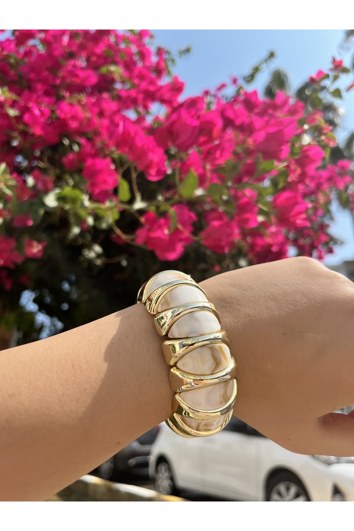 Turkuaz ve Amber Taş Görünümlü Gold Çerçeveli Bileklik Turkuaz ve Amber Taş Görünümlü Gold Çerçeveli Bileklik 25H223 تک سایز