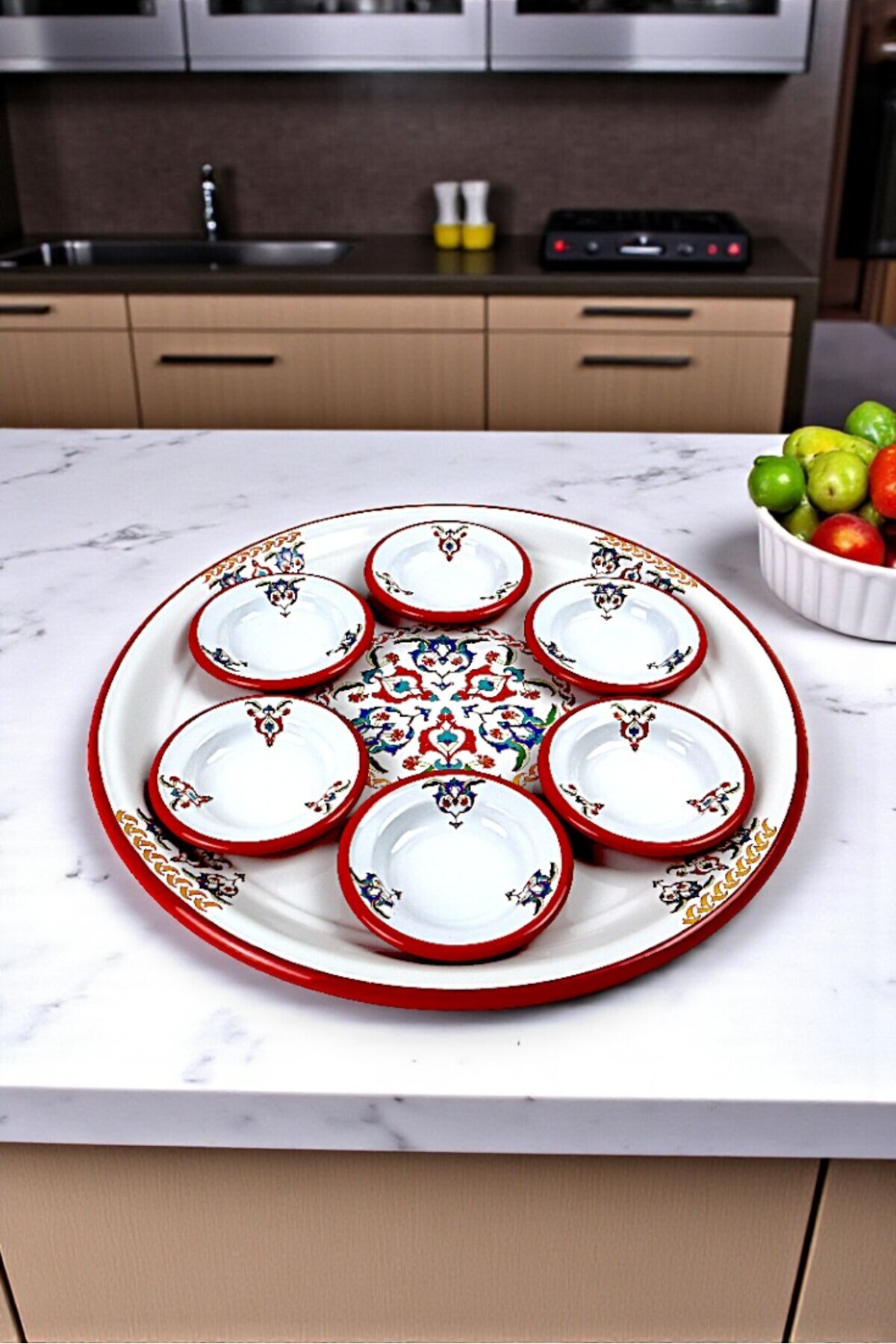 7 Parça Büyükboy çırağan Desenli Emaye Kahvaltı Seti, Sunum, Kahvaltı Tabağı, Reçellik, Çeyiz 7 Parça Büyükboy çırağan Desenli Emaye Kahvaltı Seti, Sunum, Kahvaltı Tabağı, Reçellik, Çeyiz KVS50-14 8 تک سایز