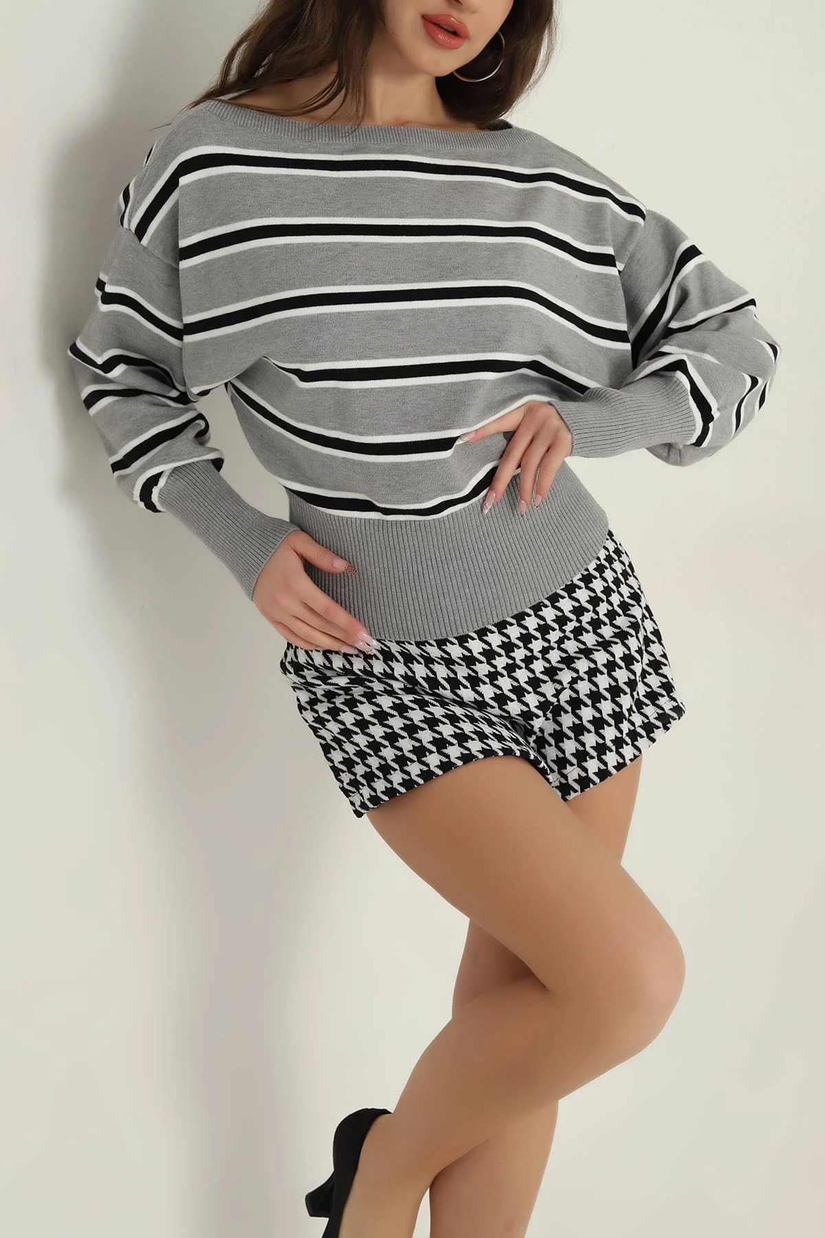 Cetry Gri Lacivert Tek Omuzu Açık Çizgili Triko Cetry Gri Lacivert Tek Omuzu Açık Çizgili Triko TRK632 Standart