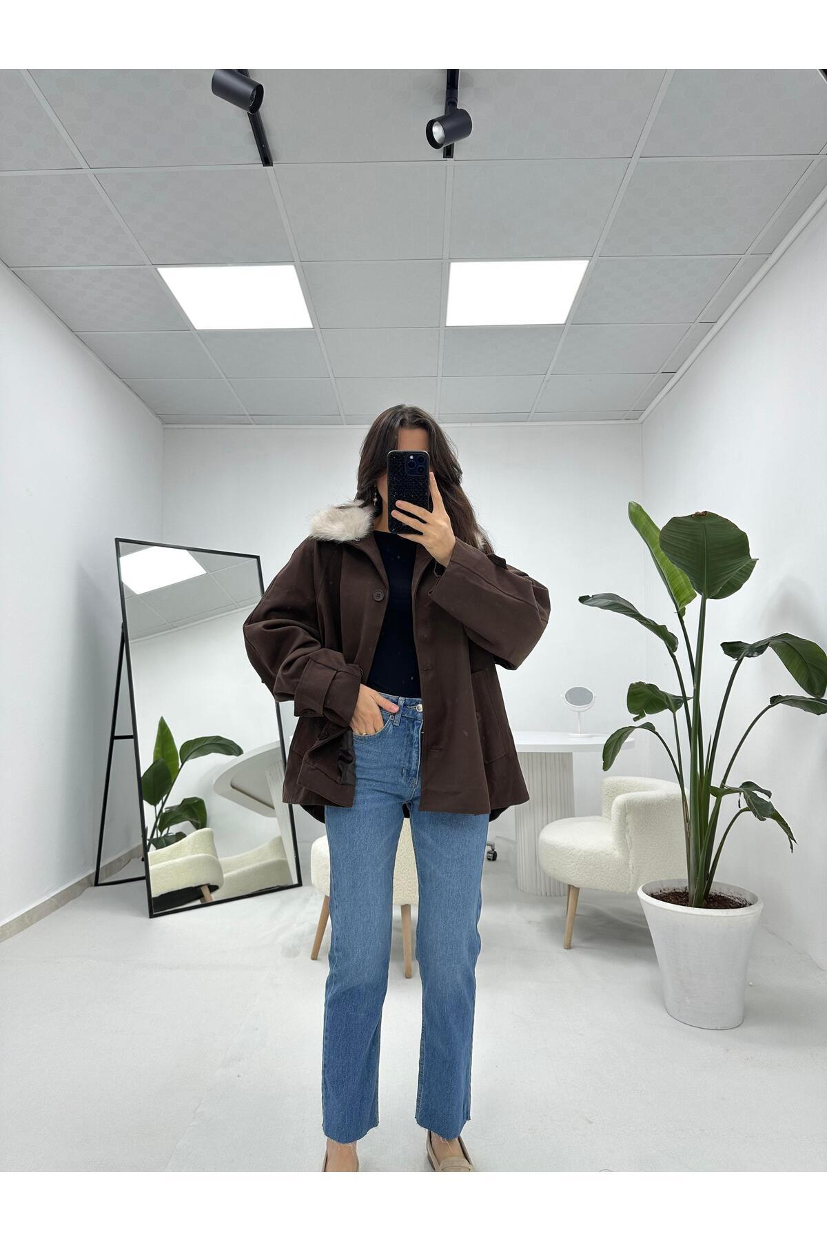 Yakası Kürk Detaylı Haki Bamber Ceket Yakası Kürk Detaylı Haki Bamber Ceket BTGM-1539 L