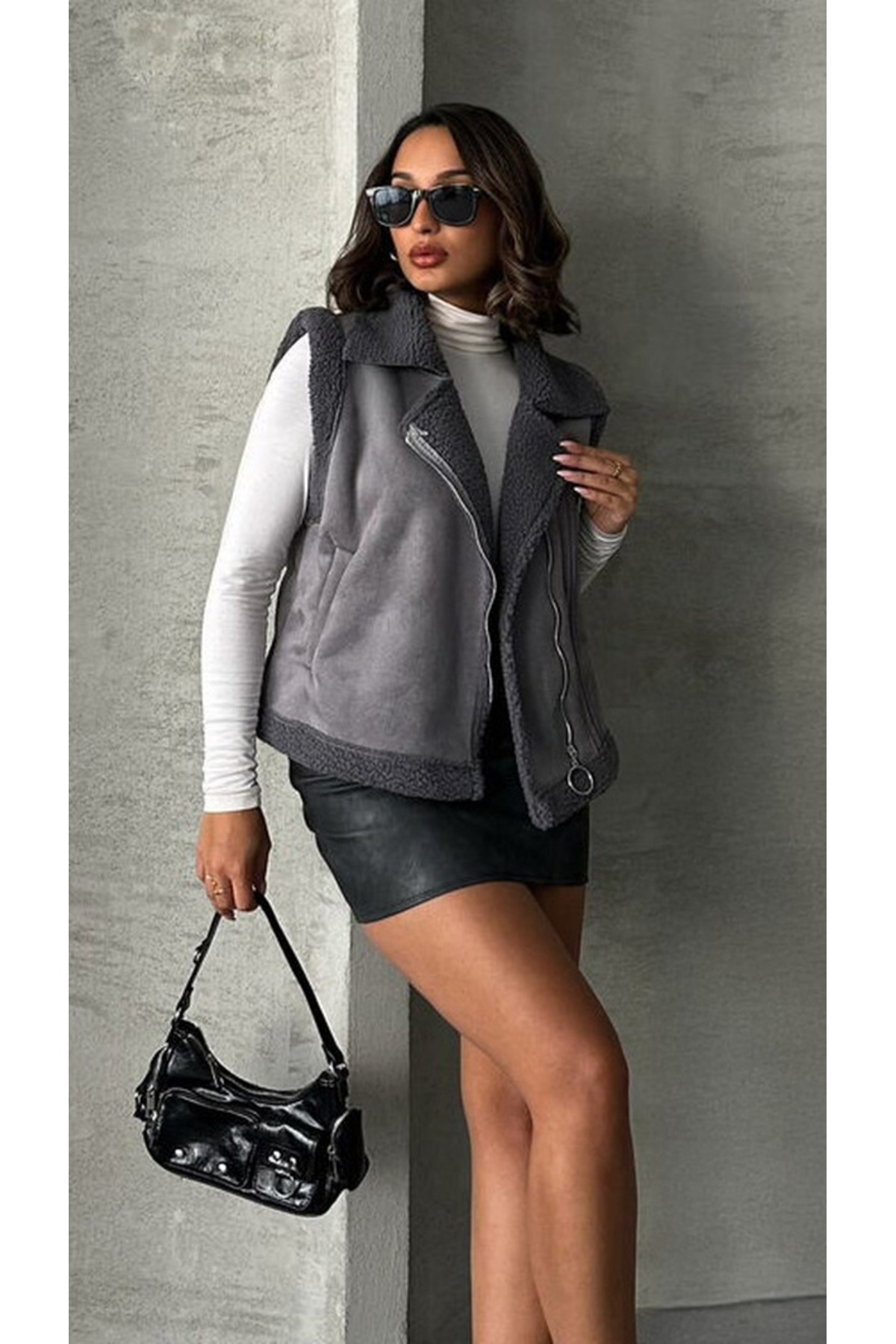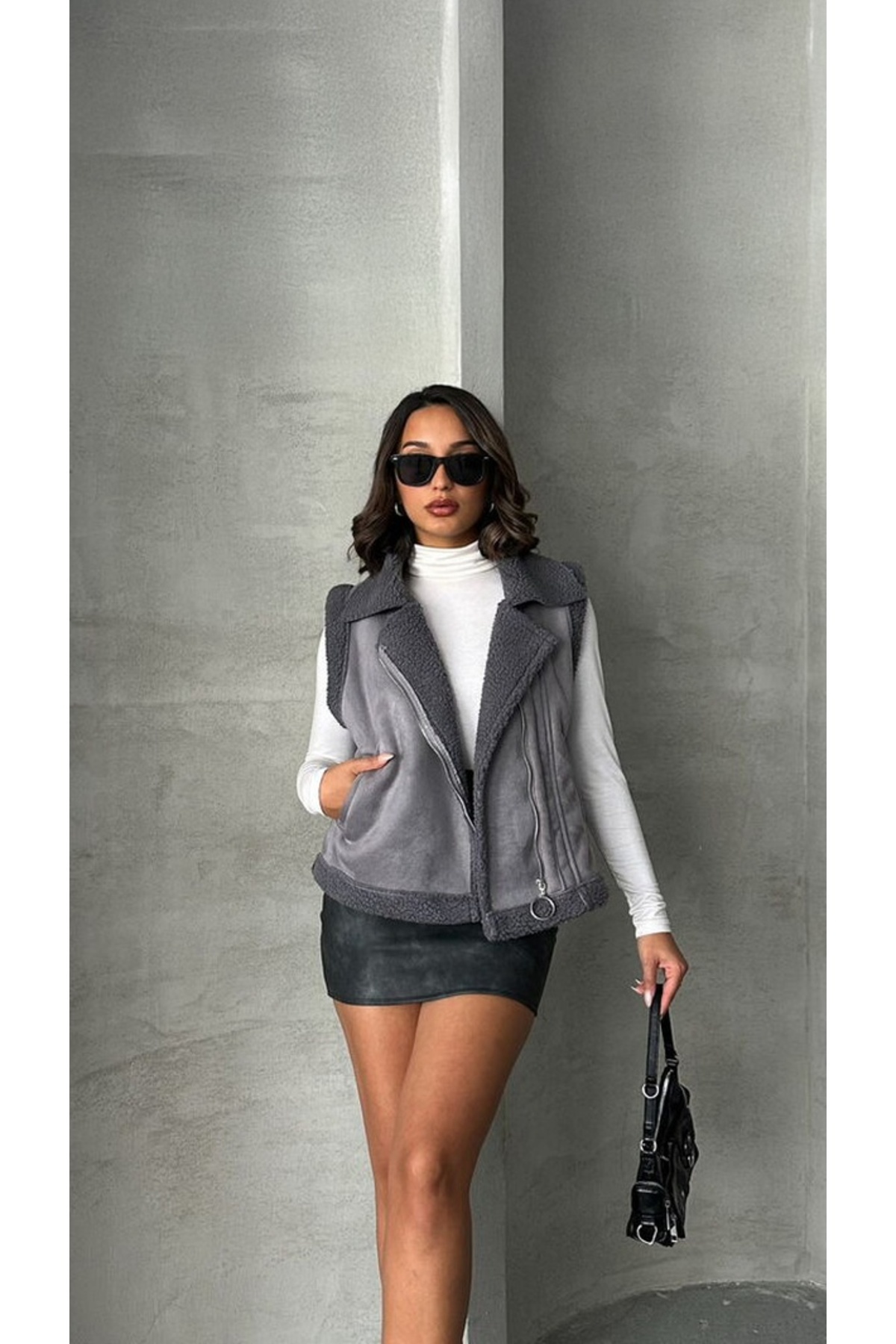 Gri Süet Yakası Kürklü Premium Luxury Trend Özel Tasarım Kadın Yelek Gri Süet Yakası Kürklü Premium Luxury Trend Özel Tasarım Kadın Yelek A05EFJUIOKMH0F1532 L