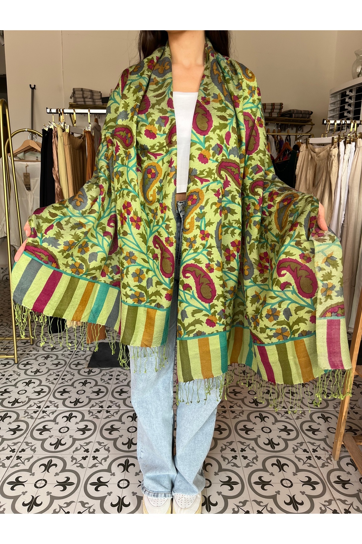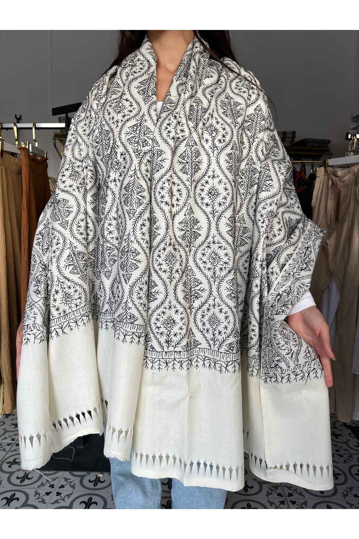 Beyaz İşleme Desenli Omuz Şalı Beyaz İşleme Desenli Omuz Şalı omz9 70 x 200