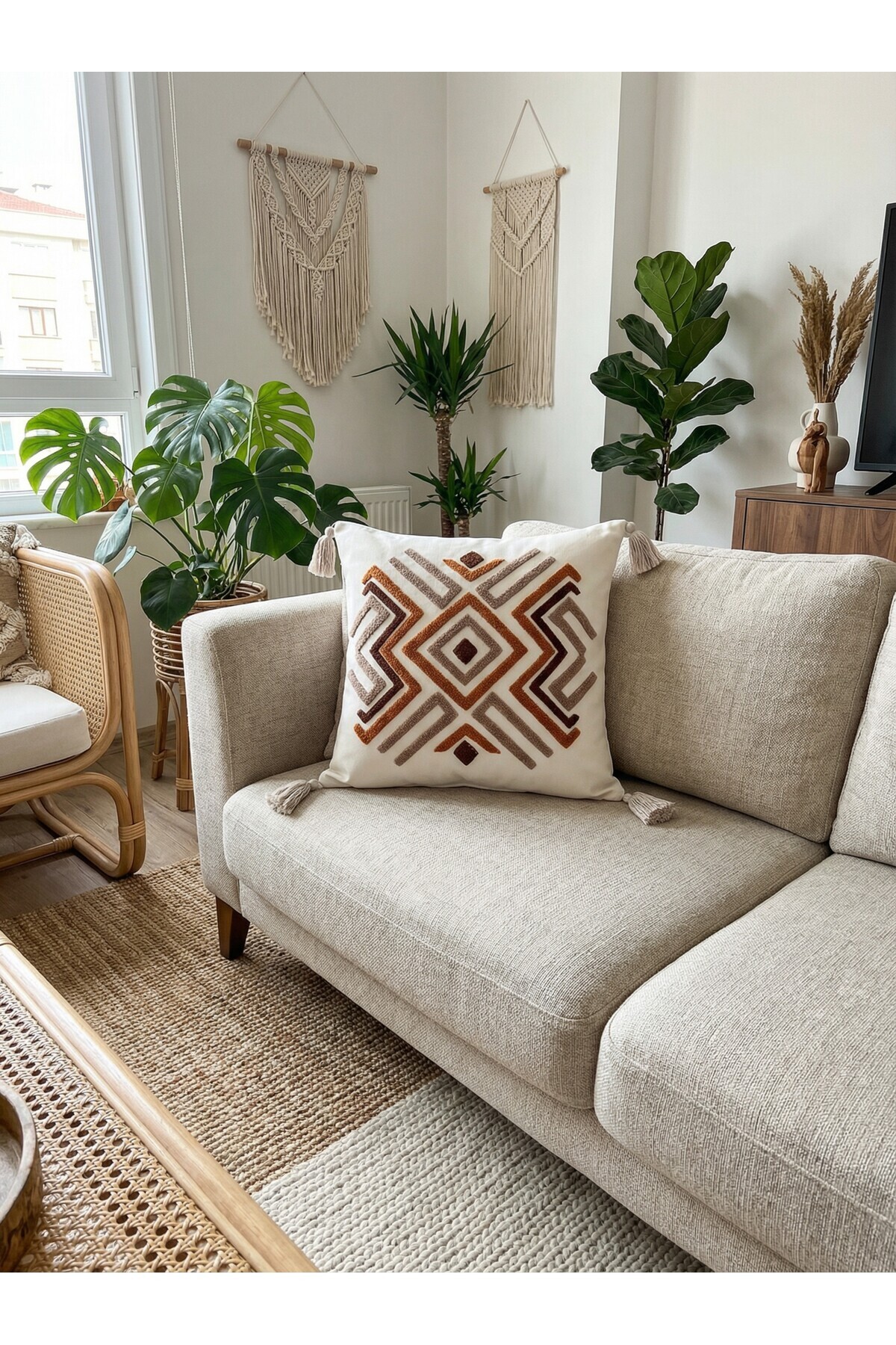Bohem Tarz Tekli Punch İşlemeli 100% Pamuk Ekru Kumaş El Yapımı Dolgun Püskül Detaylı Kırlent Kılıfı Bohem Tarz Tekli Punch İşlemeli 100% Pamuk Ekru Kumaş El Yapımı Dolgun Püskül Detaylı Kırlent Kılıfı mycsbhmyn 44 x 44