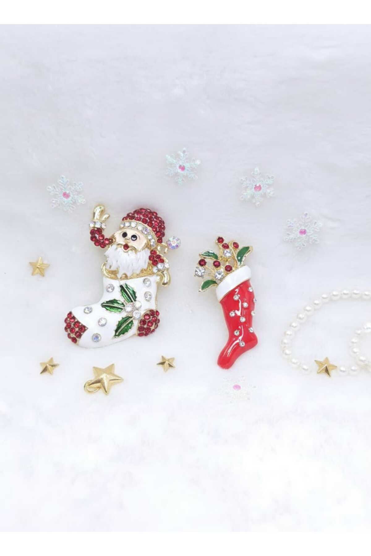 Yılbaşı Temalı Işıltılı Broş Seti: Kırmızı-Yeşil Çan ve Mor Taşlı Büyülü Çizme Yılbaşı Temalı Işıltılı Broş Seti: Kırmızı-Yeşil Çan ve Mor Taşlı Büyülü Çizme MG010060032S تک سایز