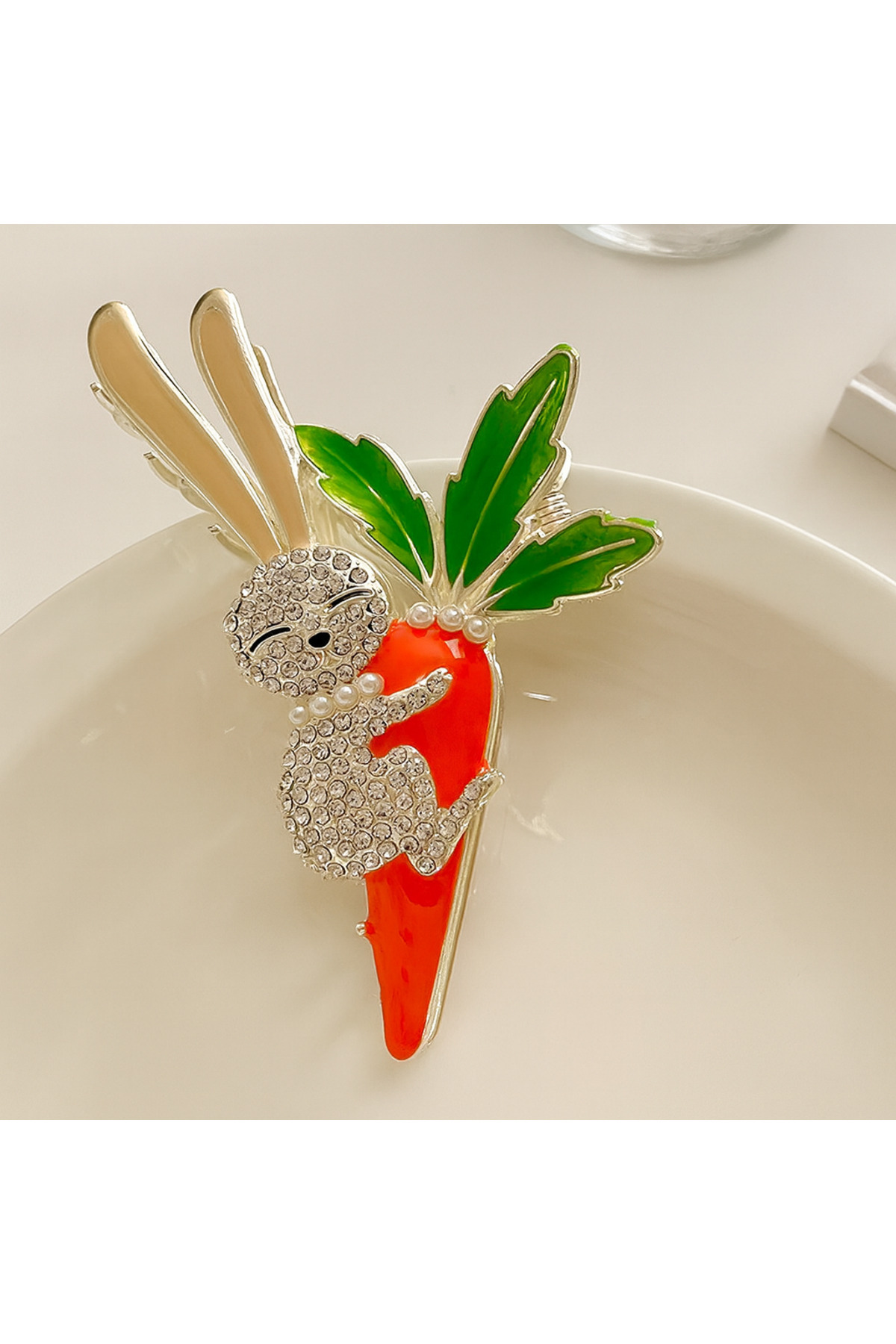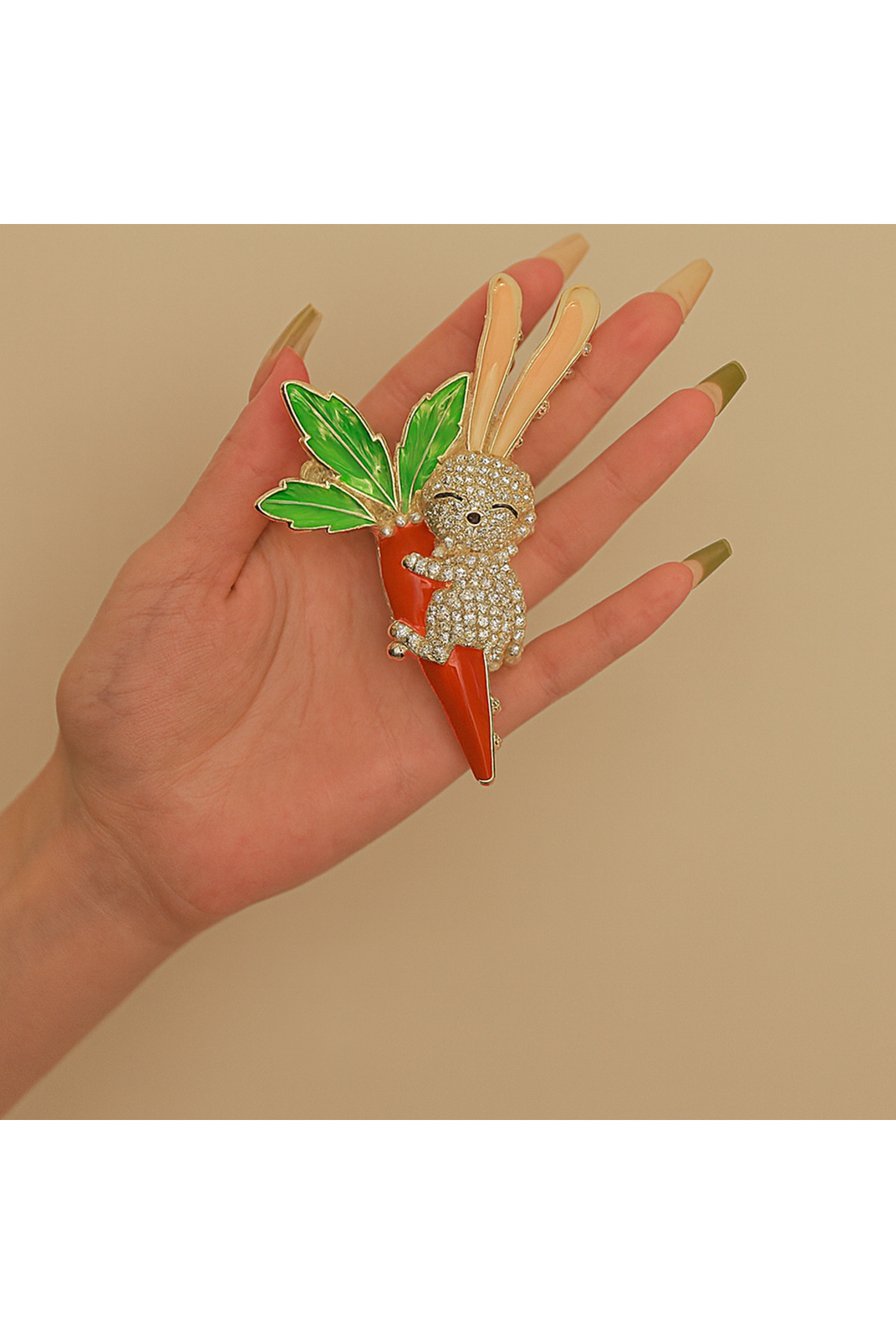 Tavşan ve Havuç Model Taşlı Saç Tokası – Sevimli Metal Mandal Toka 11 cm Tavşan ve Havuç Model Taşlı Saç Tokası – Sevimli Metal Mandal Toka 11 cm CTVSTKSTR0460 تک سایز