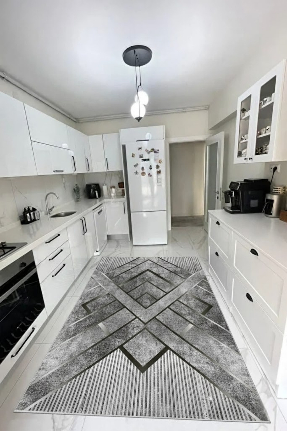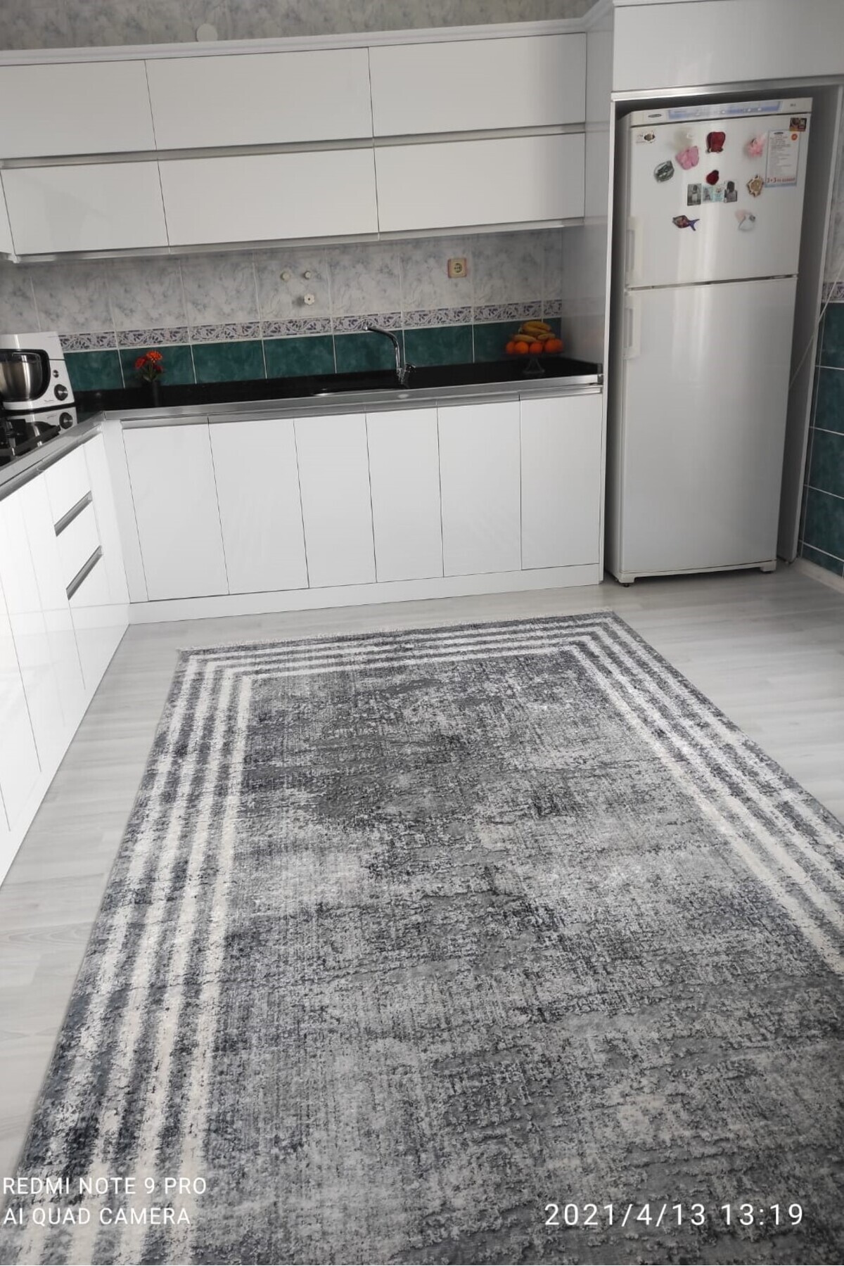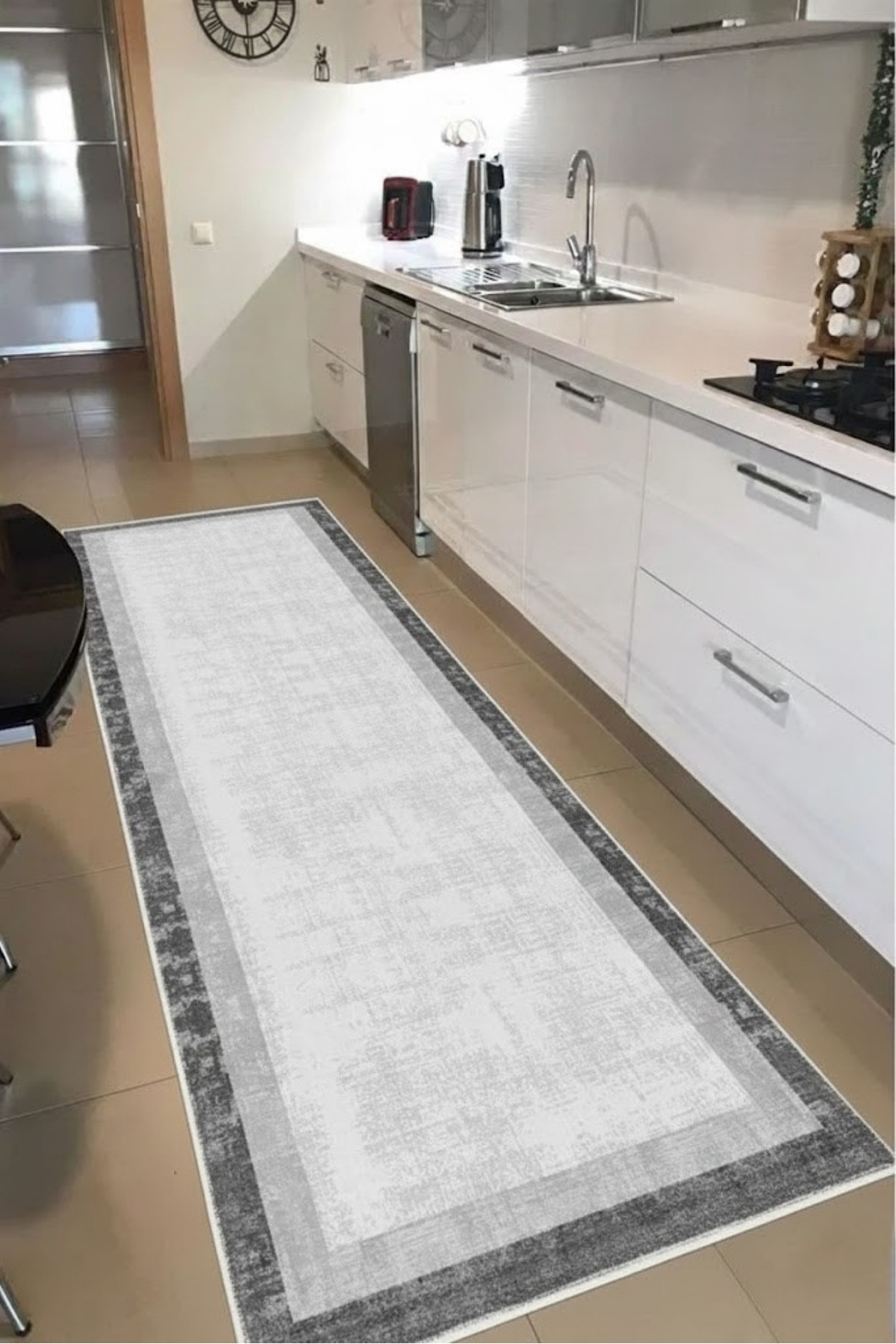 Gri Mutfak Halısı Makinede Yıkanabilir Halı Kaymaz Taban Halı Gri Mutfak Halısı Makinede Yıkanabilir Halı Kaymaz Taban Halı K1898-02 Mutfak saçaksız 100 x 430
