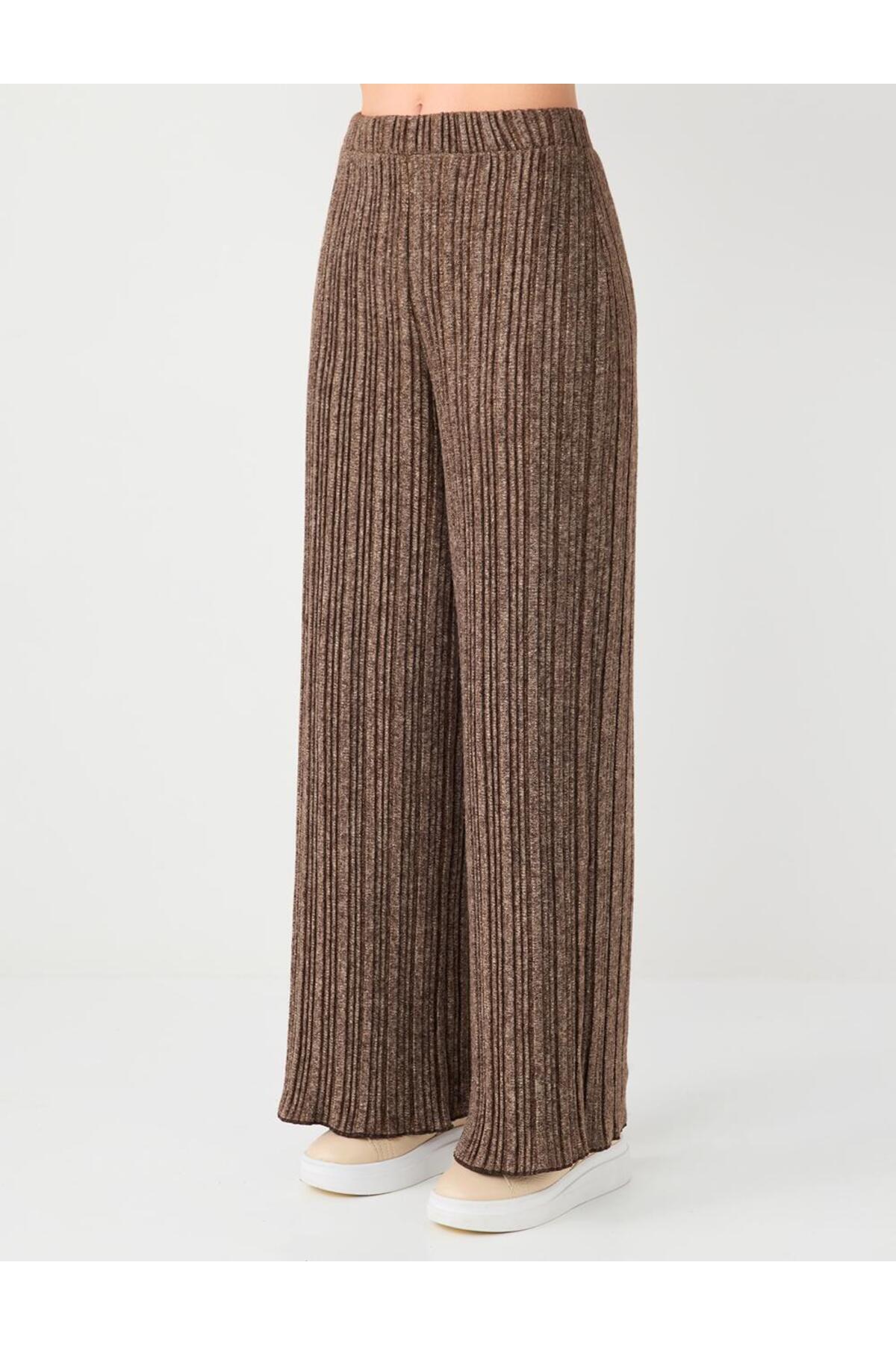 Kahve Melanj Normal Bel Bol Paça Piliseli Örme Pantolon Kahve Melanj Normal Bel Bol Paça Piliseli Örme Pantolon 5WW186108 XL