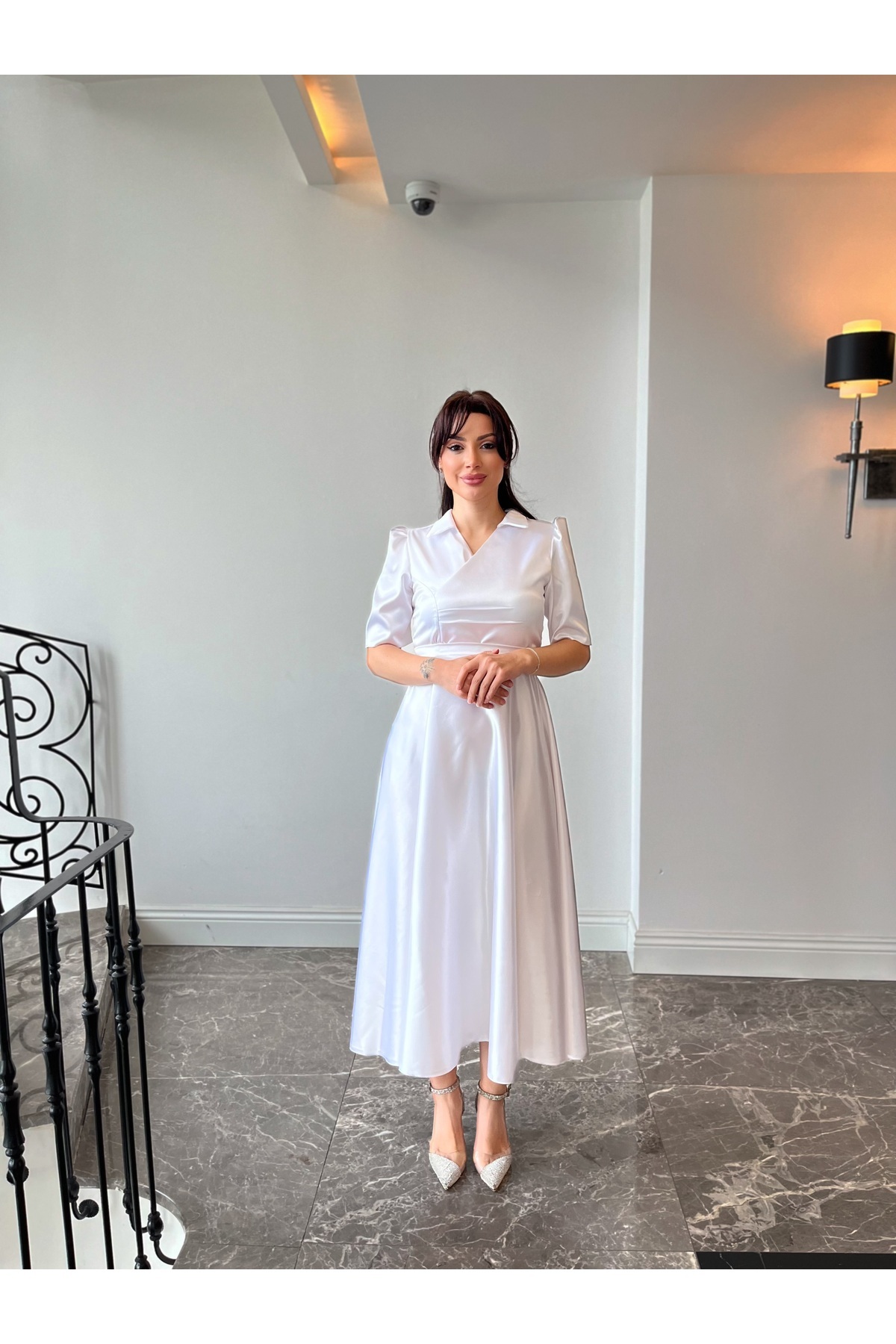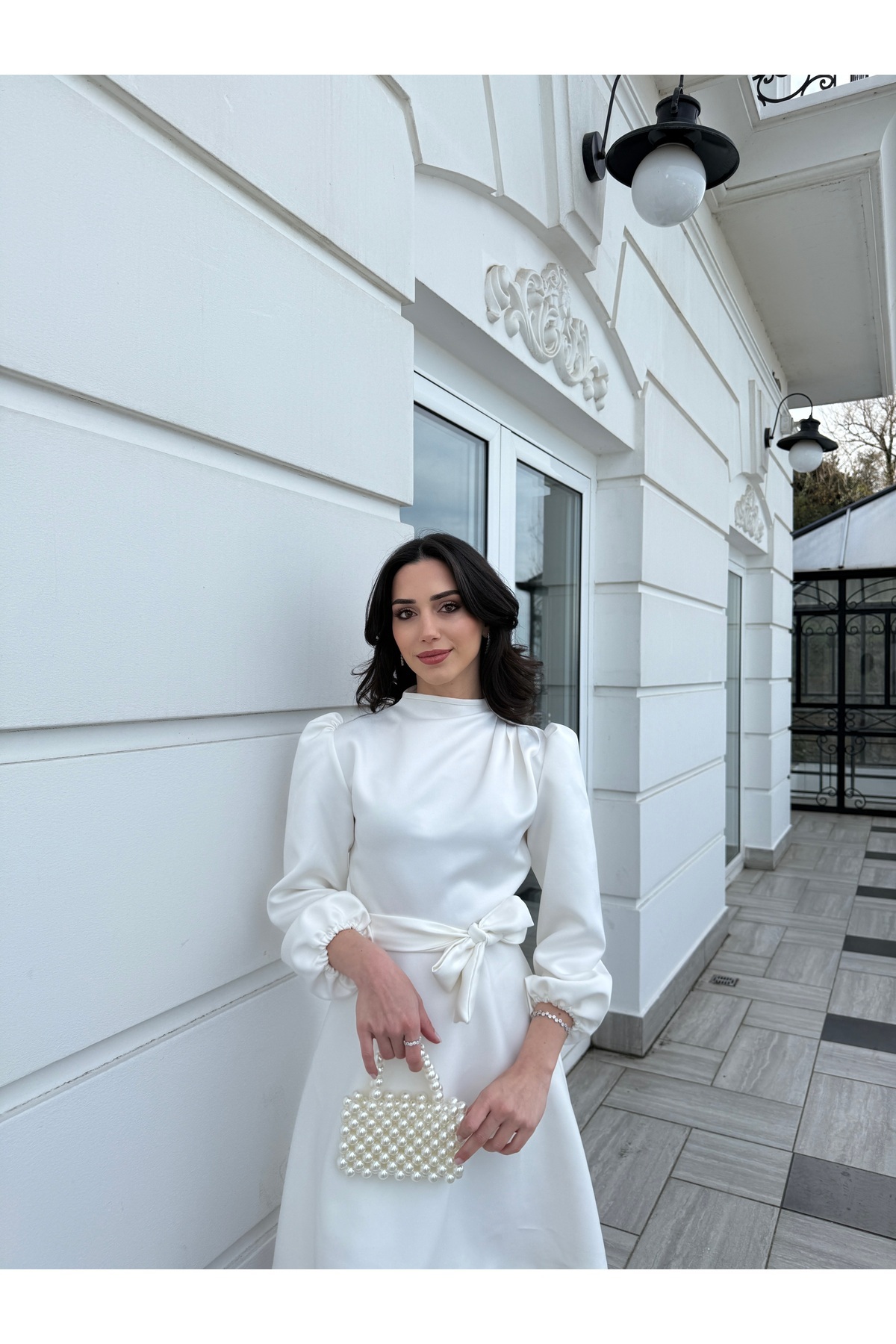 ADEN beyaz kloş etek omzu pileli belden kemerli uzun kol elbise/abiye ADEN beyaz kloş etek omzu pileli belden kemerli uzun kol elbise/abiye abdullah3 42