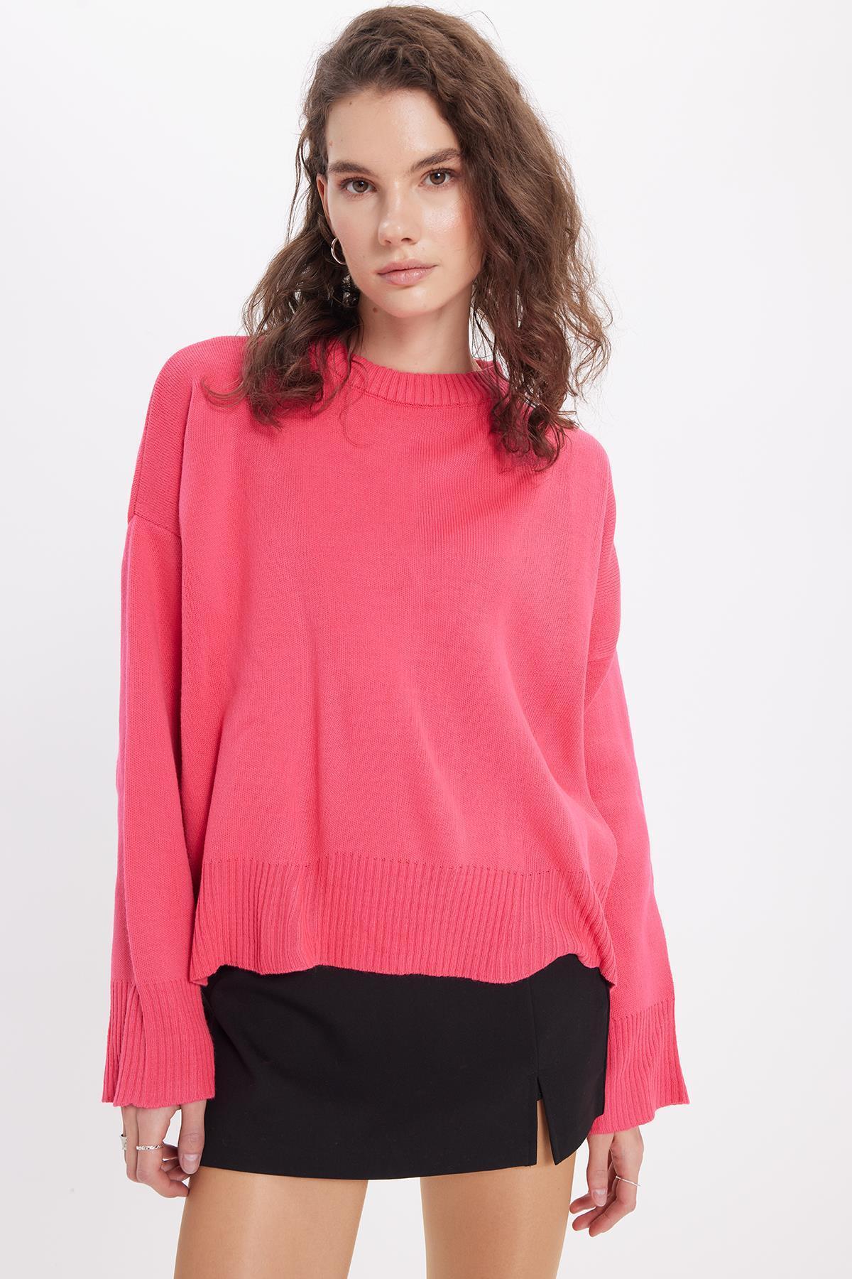 Kadın Oversize Geniş Kesim Bisiklet Yaka Fuşya Kazak Kadın Oversize Geniş Kesim Bisiklet Yaka Fuşya Kazak BYKZ2532 XL