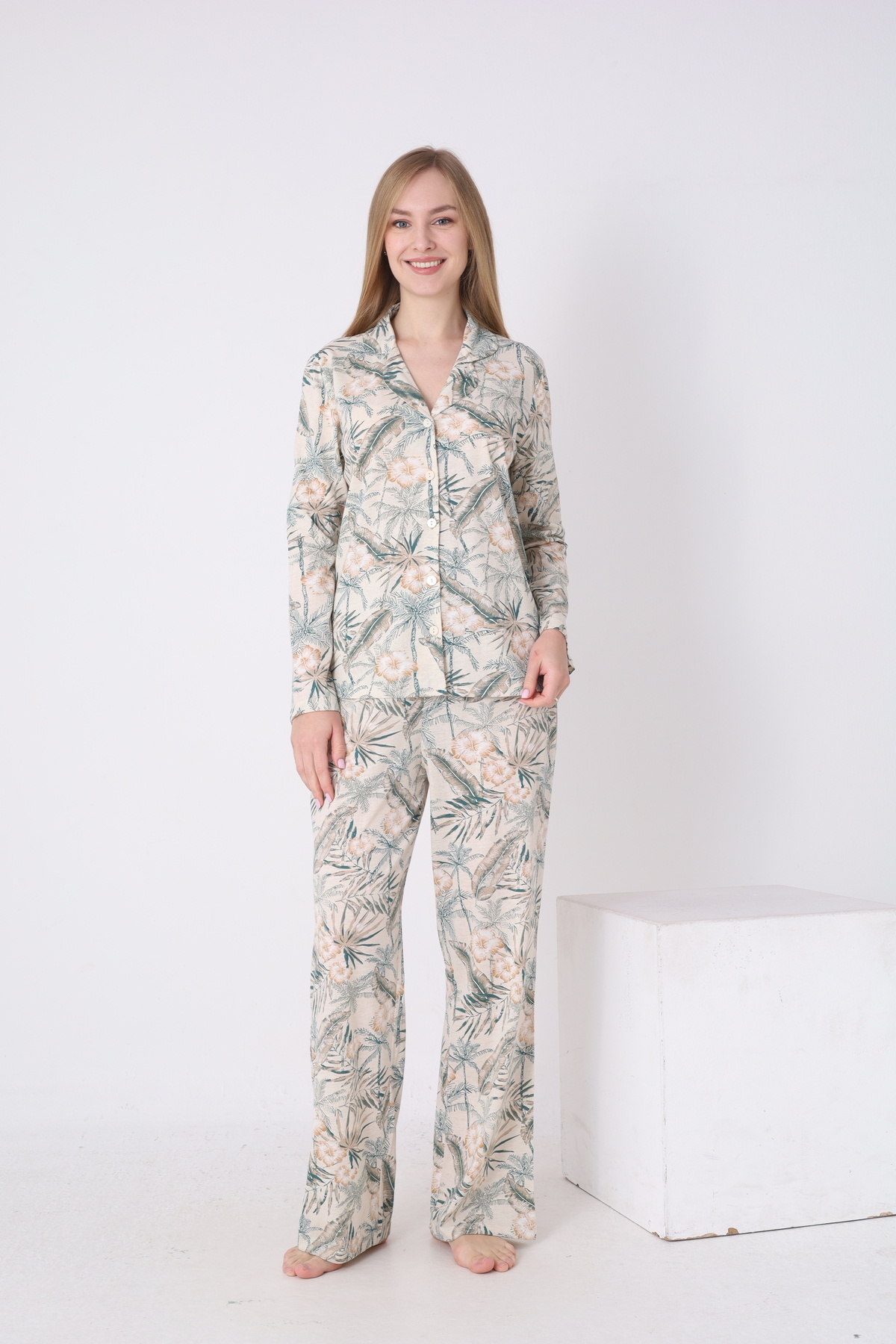 Kadın %100 Pamuklu Düğmeli Pijama Takım 19116 Kadın %100 Pamuklu Düğmeli Pijama Takım 19116 2XL