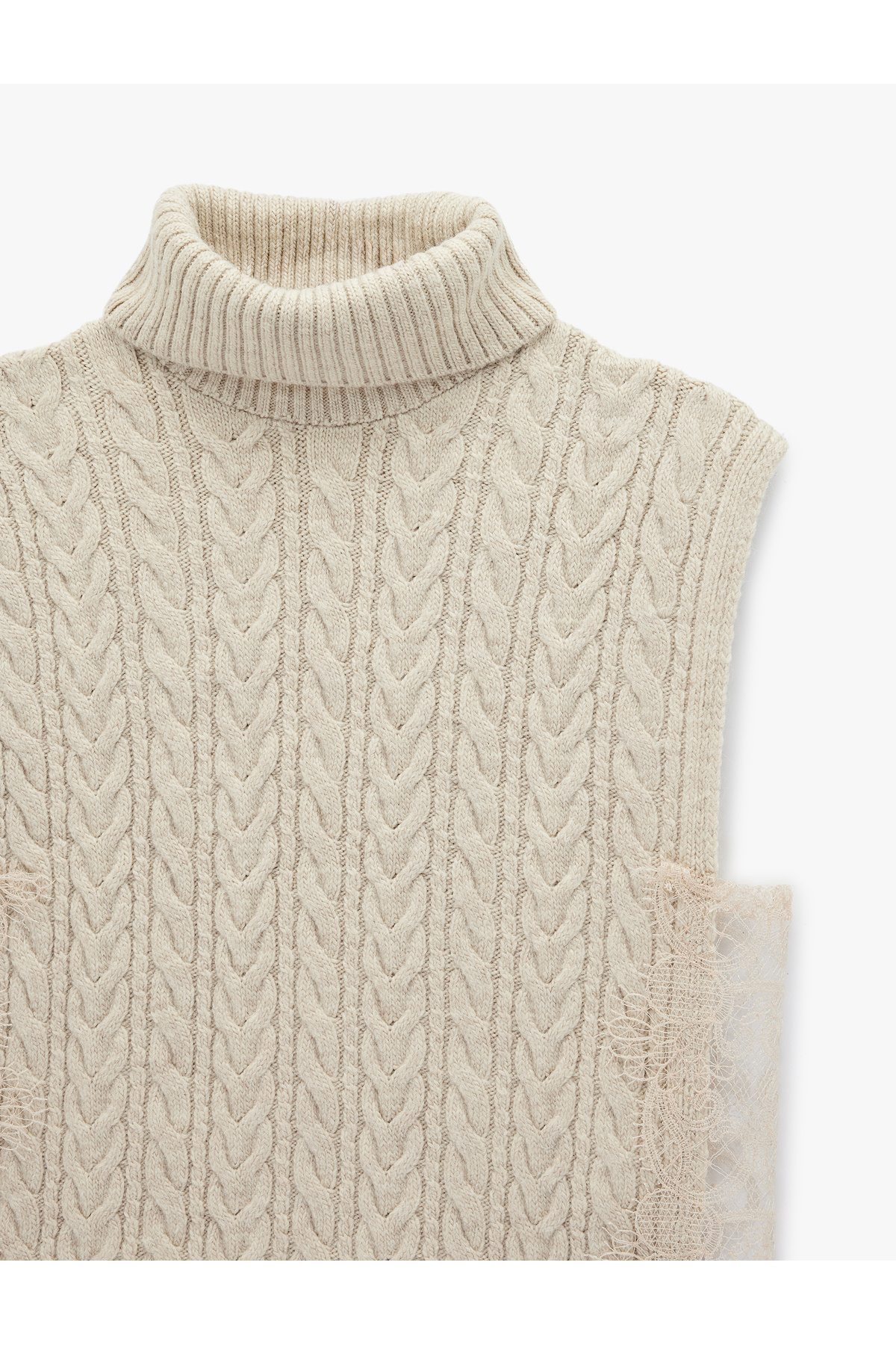X Şahika Ercümen - Yanları Dantel Detaylı Balıkçı Yaka Saç Örgü Süveter X Şahika Ercümen - Yanları Dantel Detaylı Balıkçı Yaka Saç Örgü Süveter 6WAK20098HT XL