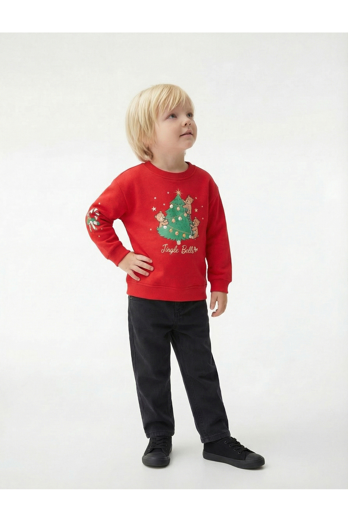 Pamuklu Uzun Kollu Bisiklet Yaka Şardonlu Yılbaşı Baskılı Sweatshirt Pamuklu Uzun Kollu Bisiklet Yaka Şardonlu Yılbaşı Baskılı Sweatshirt 6WMG10180AK 24-36 Ay