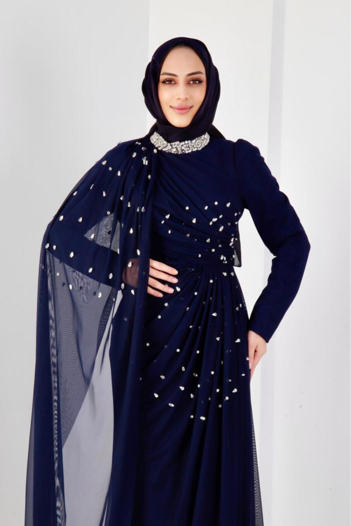 Kadın Tesettür Abiye - Berrak Taşlı Abiye - Pelerinli Abiye - Düğünlük Abiye - Lacivert Abiye Kadın Tesettür Abiye - Berrak Taşlı Abiye - Pelerinli Abiye - Düğünlük Abiye - Lacivert Abiye D5399-1 46