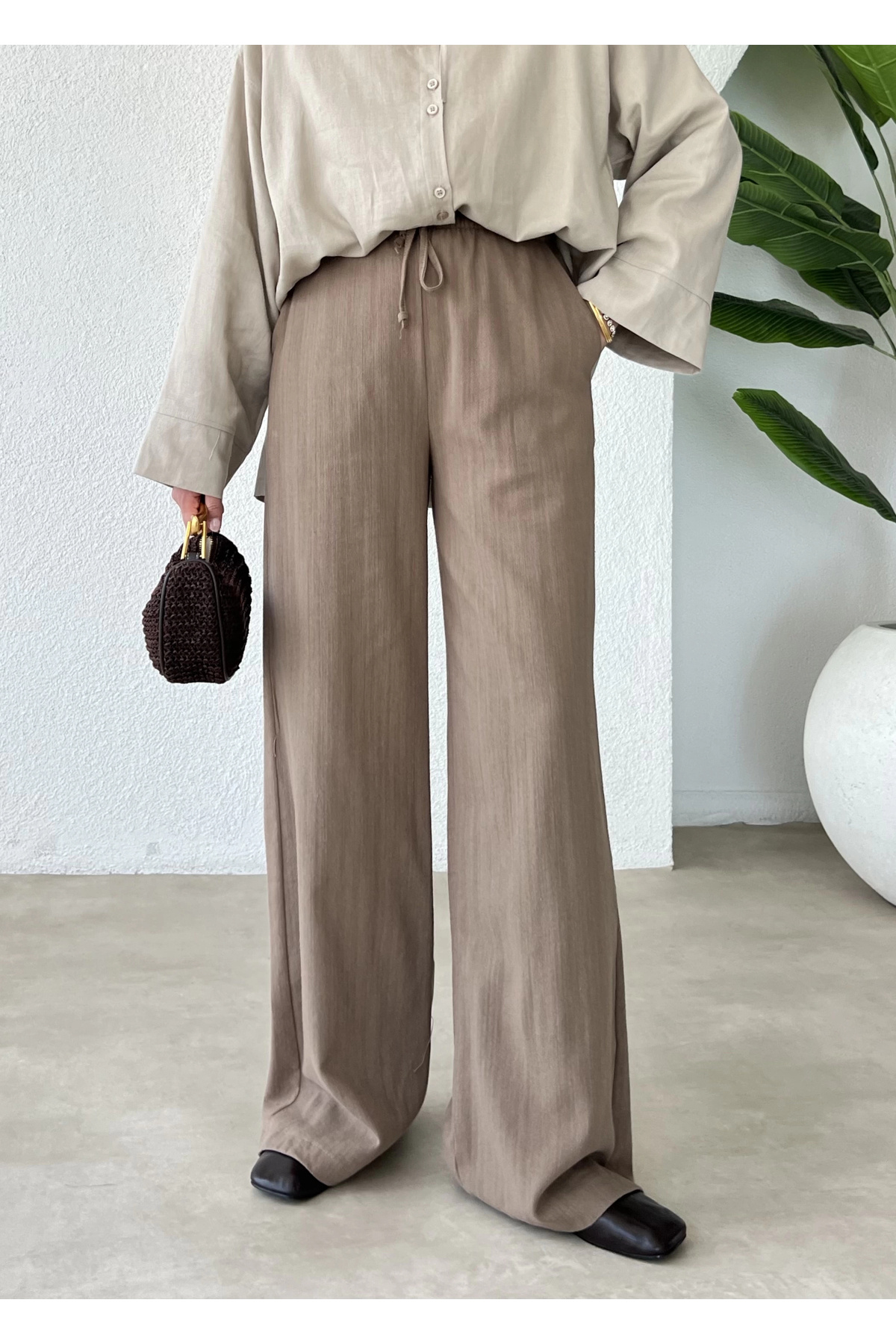 DÖKÜMLÜ KREP PALAZZO KOYU acı kahve DÖKÜMLÜ KREP PALAZZO KOYU acı kahve P6087S3572 XL