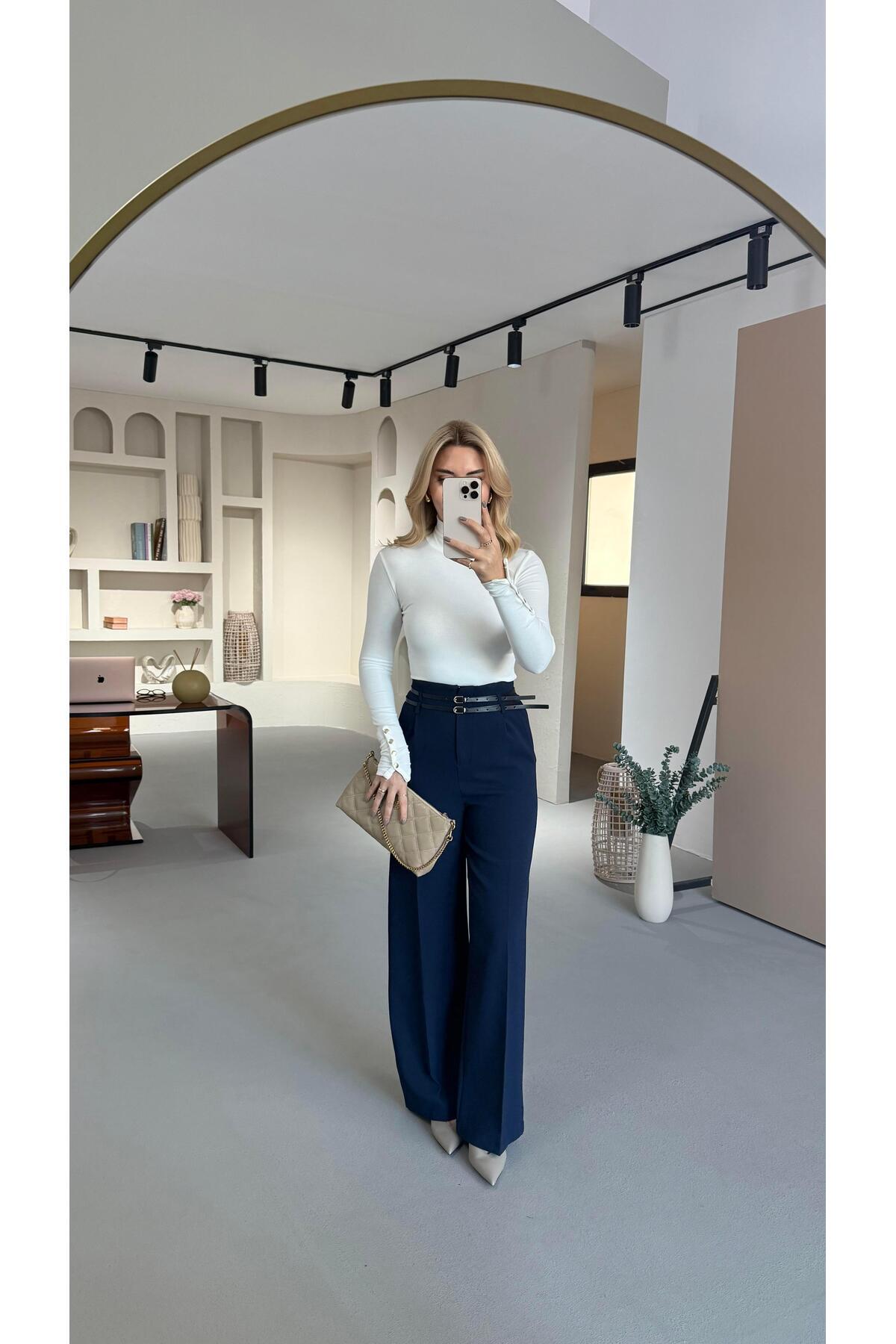 Çift Kemerli Duble Krep Lacivert Palazzo Pantolon Çift Kemerli Duble Krep Lacivert Palazzo Pantolon PNT-0581-LCV XL