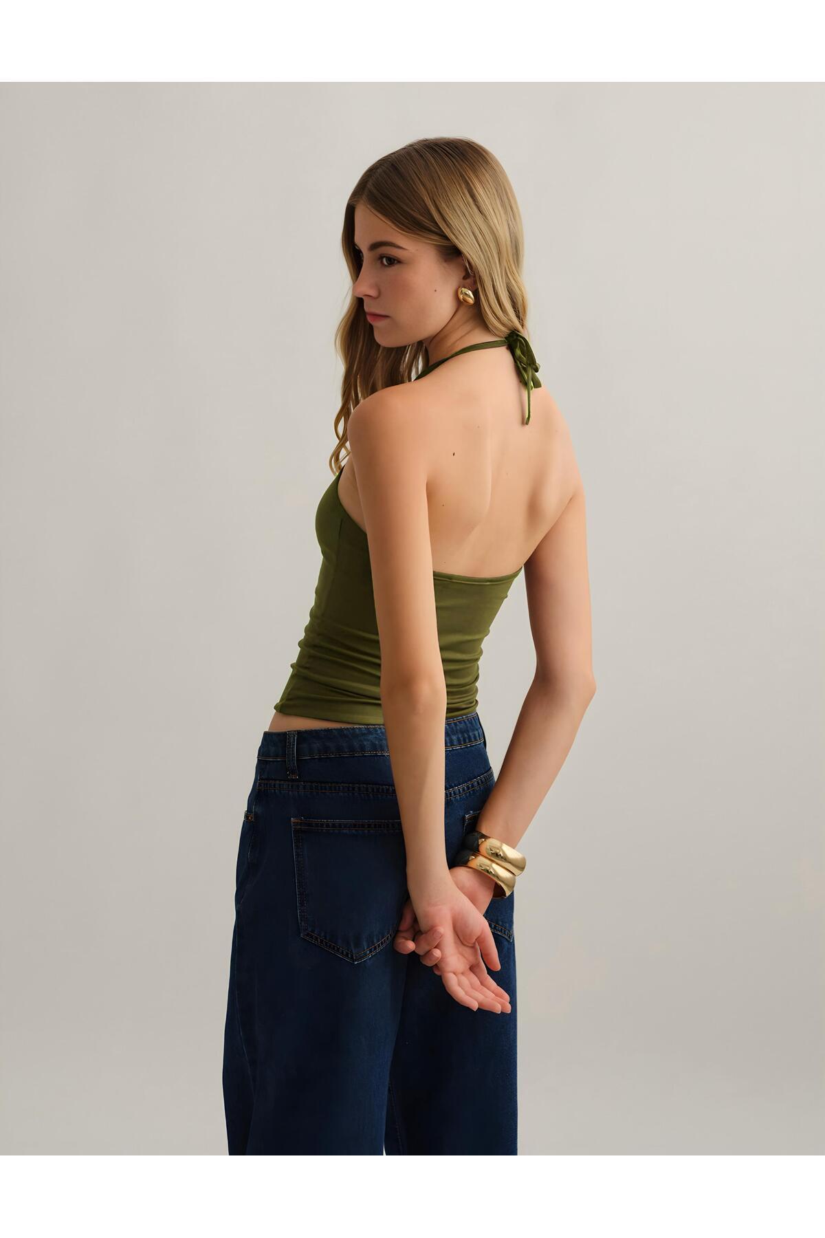 Halter Yaka Pamuklu Boyundan Bağlamalı Üst Bluz Halter Yaka Pamuklu Boyundan Bağlamalı Üst Bluz BAL-BA1 XL