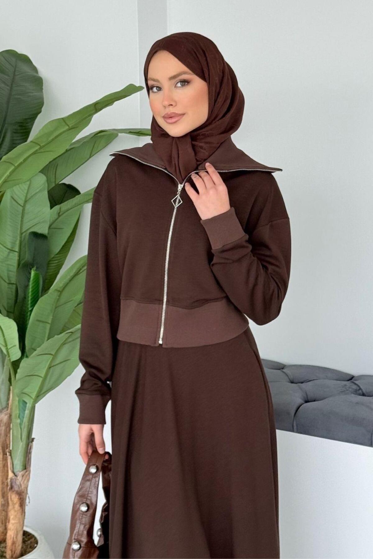 Moda Ribanalı Takım Kahverengi Moda Ribanalı Takım Kahverengi 20214 L/XL