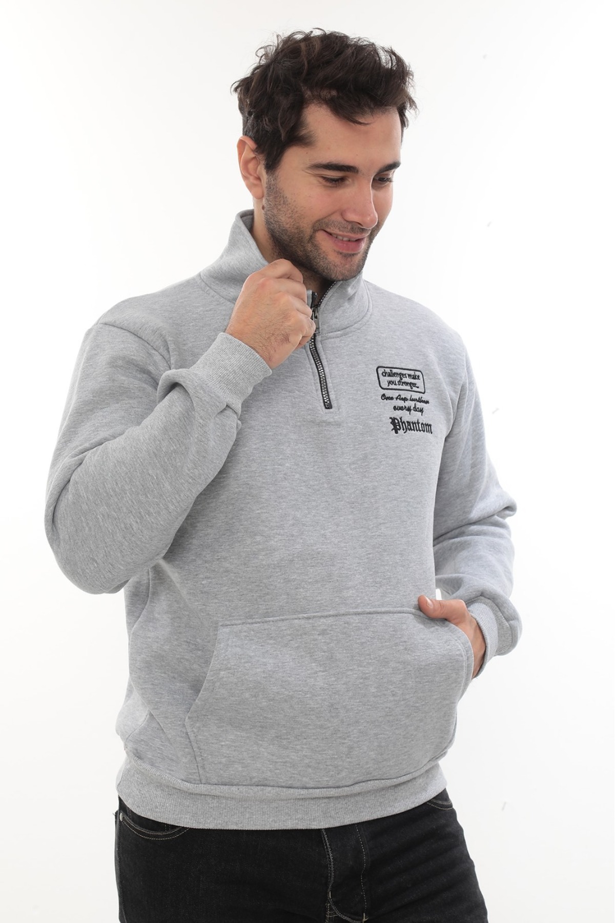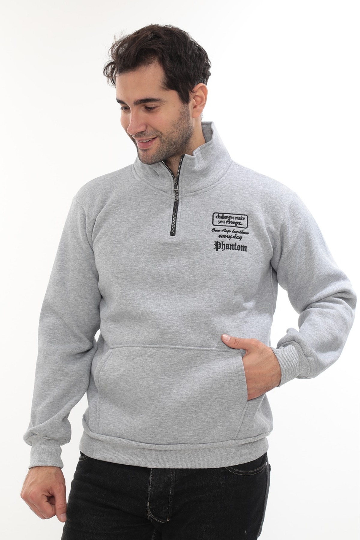Erkek Açık Gri İçi Polarlı Yarım Fermuarlı Dik Bato Yaka Pamuklu Sweatshirt Erkek Açık Gri İçi Polarlı Yarım Fermuarlı Dik Bato Yaka Pamuklu Sweatshirt DİK-YAKA-YARIM-FERMUAR 2XL