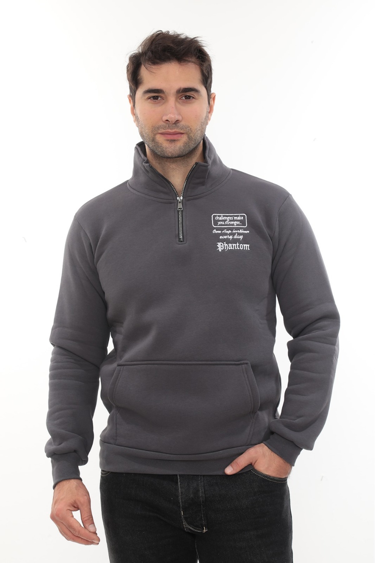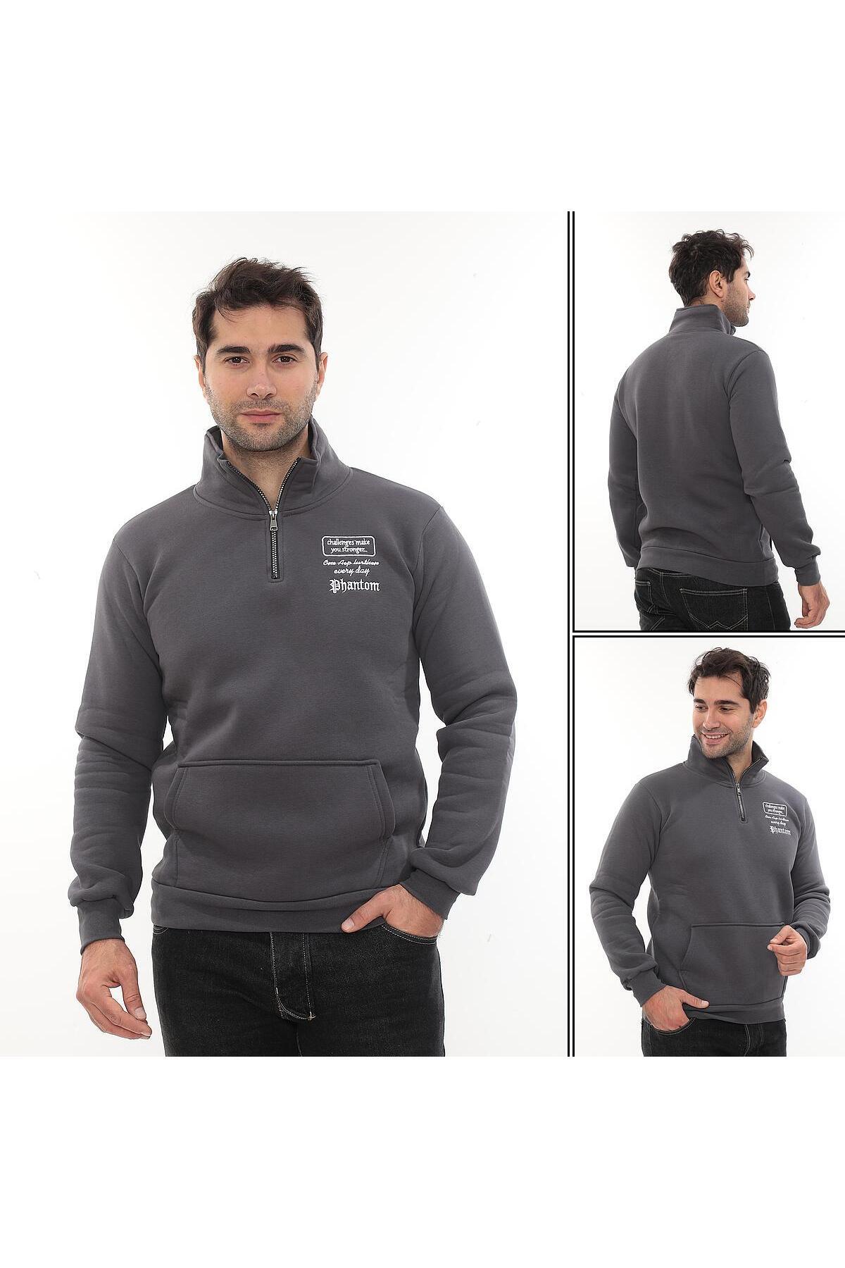 Erkek Füme İçi Polarlı Yarım Fermuarlı Dik Bato Yaka Pamuklu Sweatshirt Erkek Füme İçi Polarlı Yarım Fermuarlı Dik Bato Yaka Pamuklu Sweatshirt DİK-YAKA-YARIM-FERMUAR 2XL