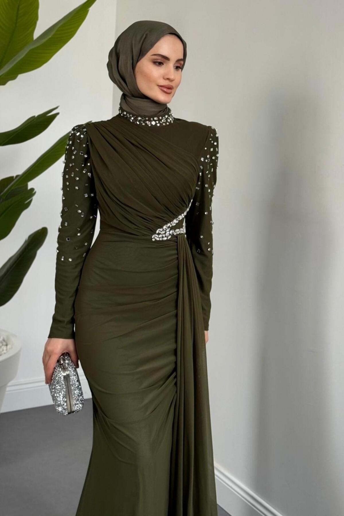 Elvira Taş Detaylı Tül Abiye Haki Elvira Taş Detaylı Tül Abiye Haki 1233 48