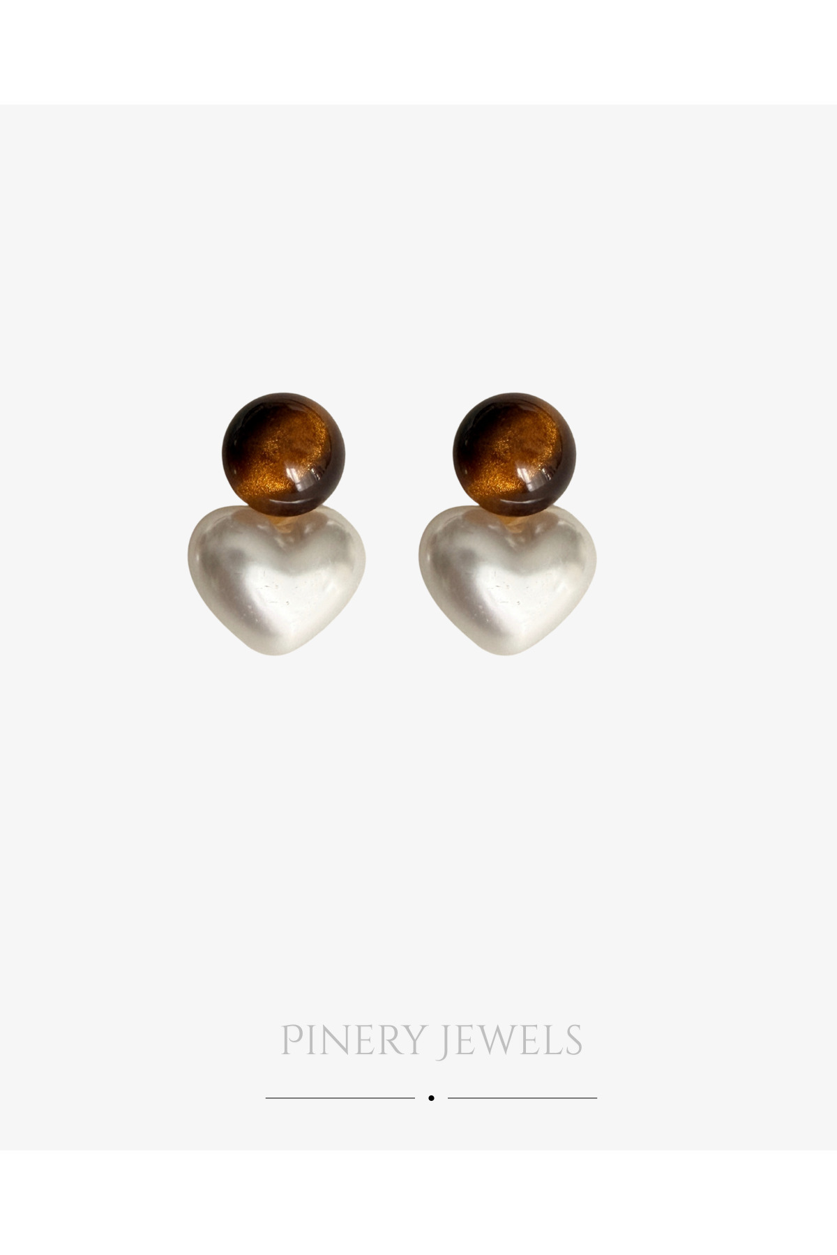 İnci Kalp Kahverengi Taşlı Sallantılı Küpe Çifti İnci Kalp Kahverengi Taşlı Sallantılı Küpe Çifti PJKP221284 تک سایز