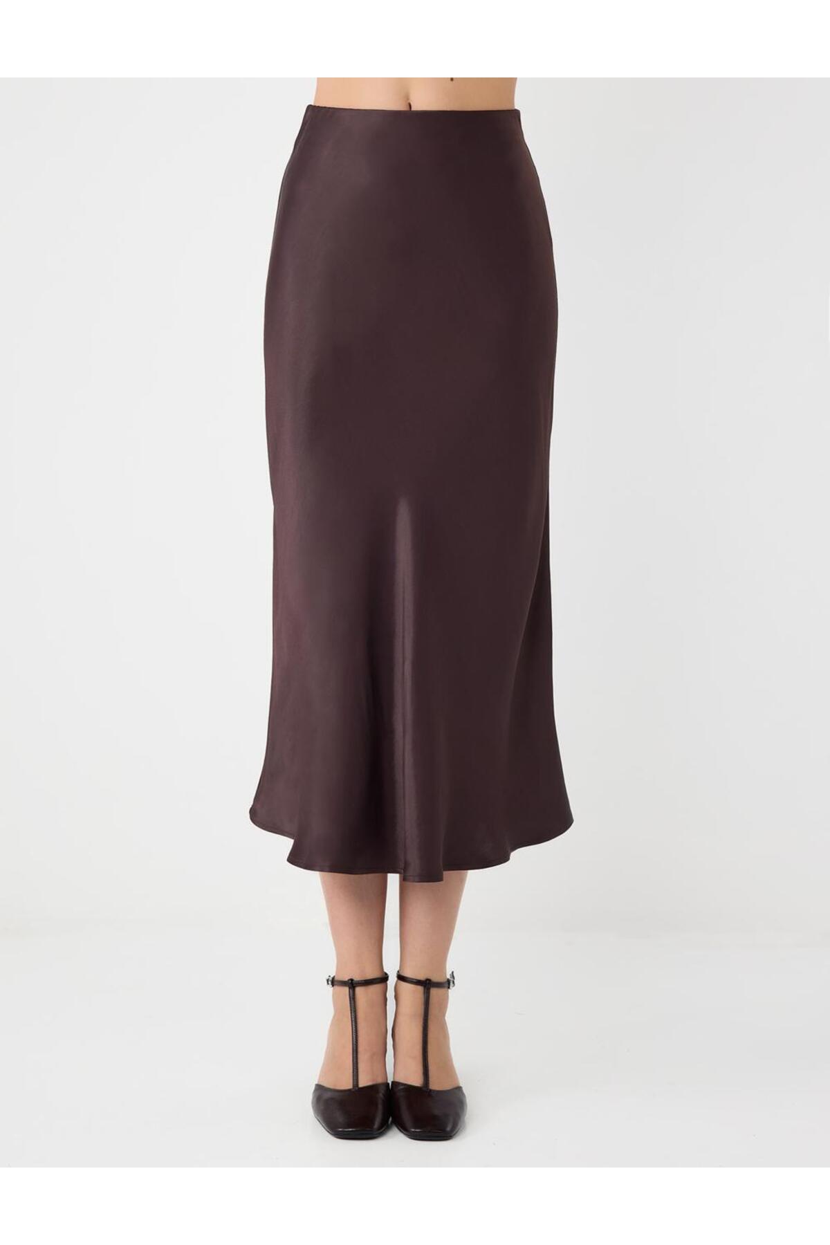 Acı Kahve Dar Kesim Normal Bel Midi Saten Etek Acı Kahve Dar Kesim Normal Bel Midi Saten Etek 5WW075475 XL