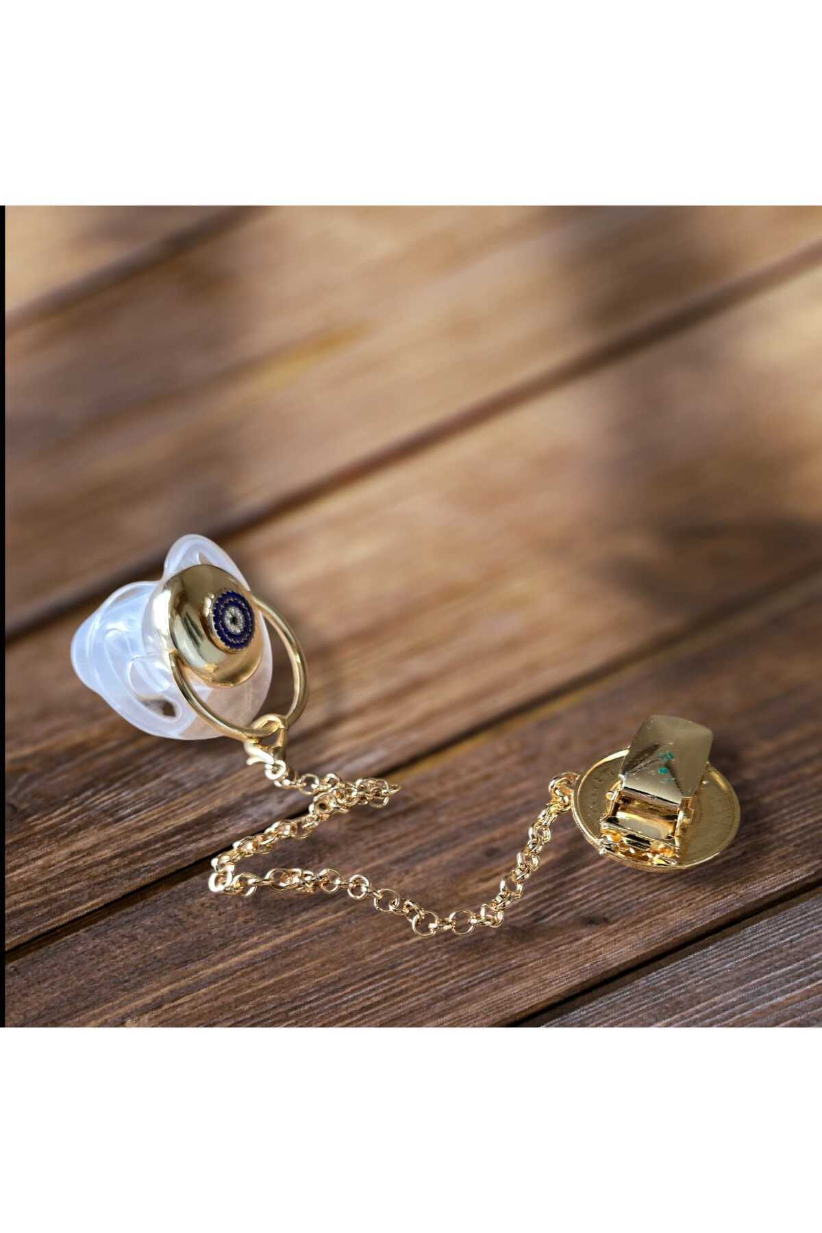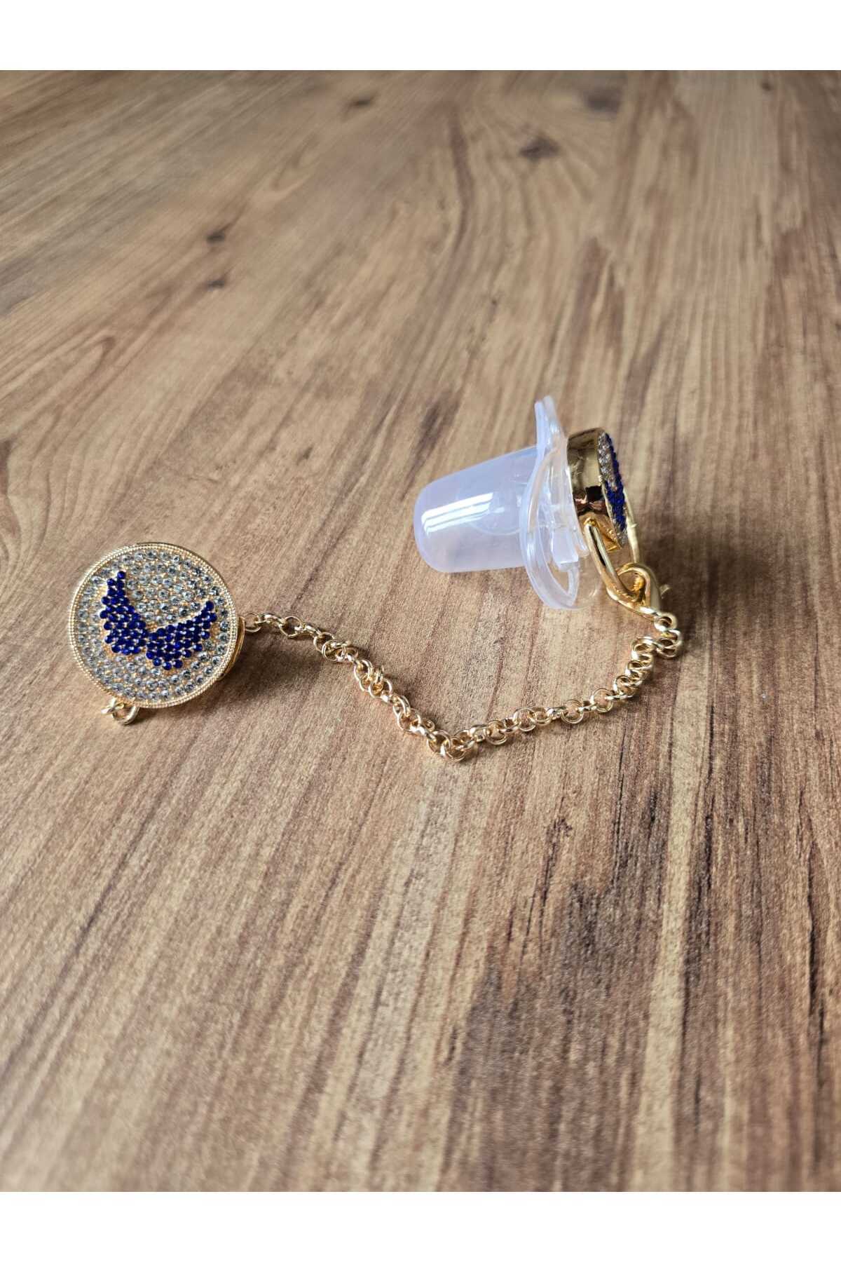 Bıyık Desenli Zirkon Taşlı Emzik Ve Zincir Bıyık Desenli Zirkon Taşlı Emzik Ve Zincir EZTK0053 18-24 AY