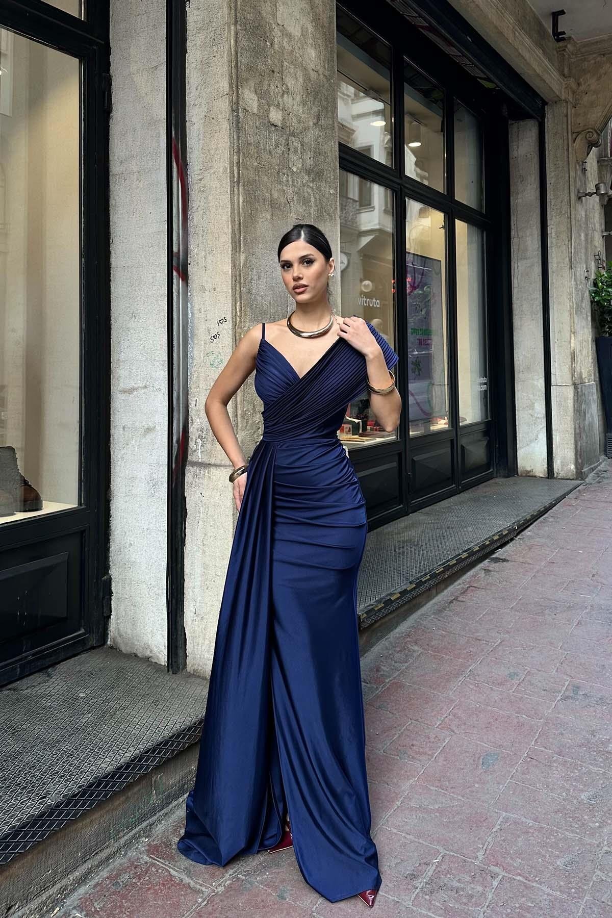Kadın Lacivert Likralı Tek Omuz Uzun Abiye Elbise | Şık Gece Elbisesi MLB111 Kadın Lacivert Likralı Tek Omuz Uzun Abiye Elbise | Şık Gece Elbisesi MLB111