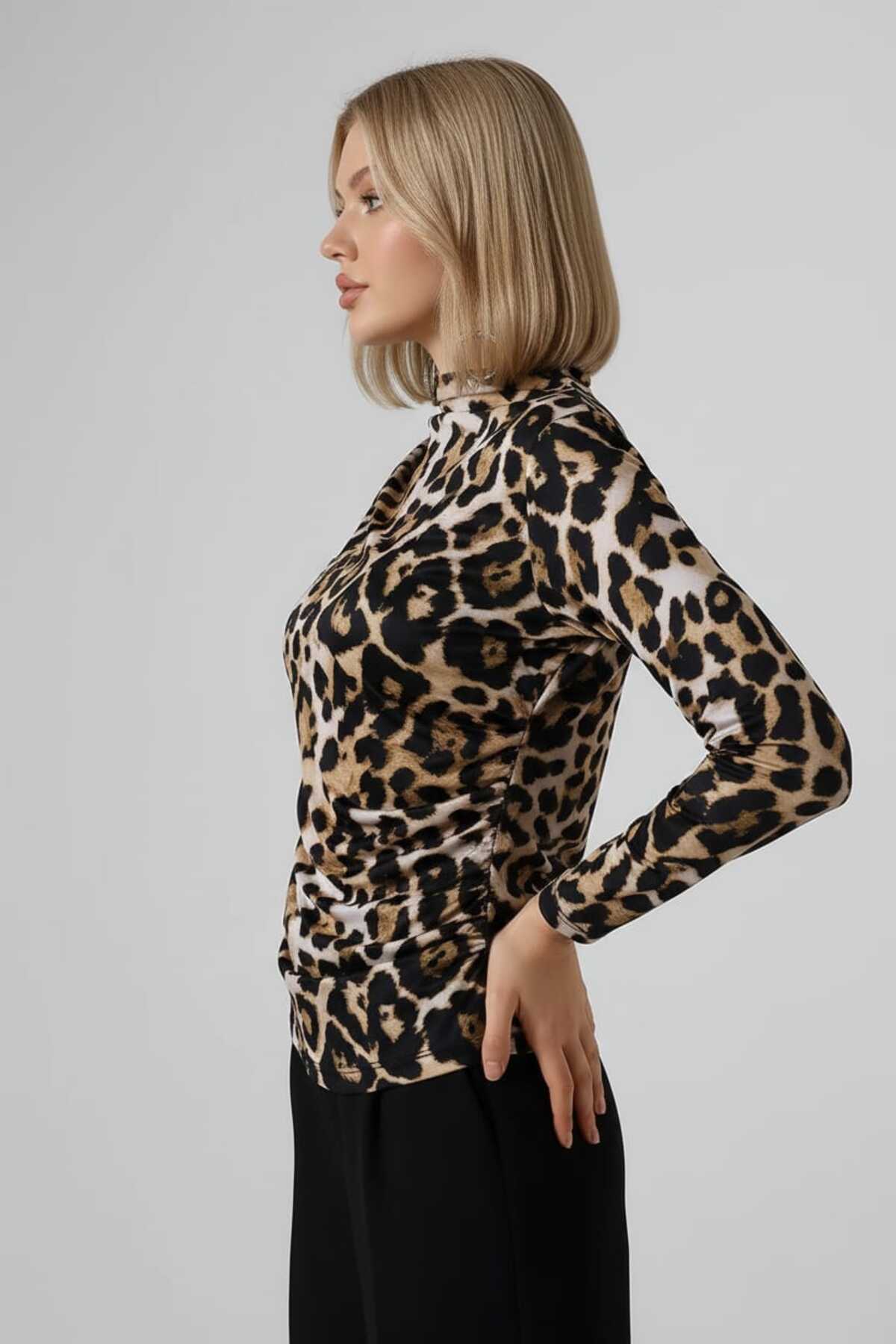 Boğazlı Drapeli Leopar Bluz Boğazlı Drapeli Leopar Bluz BLZ000004 Standart