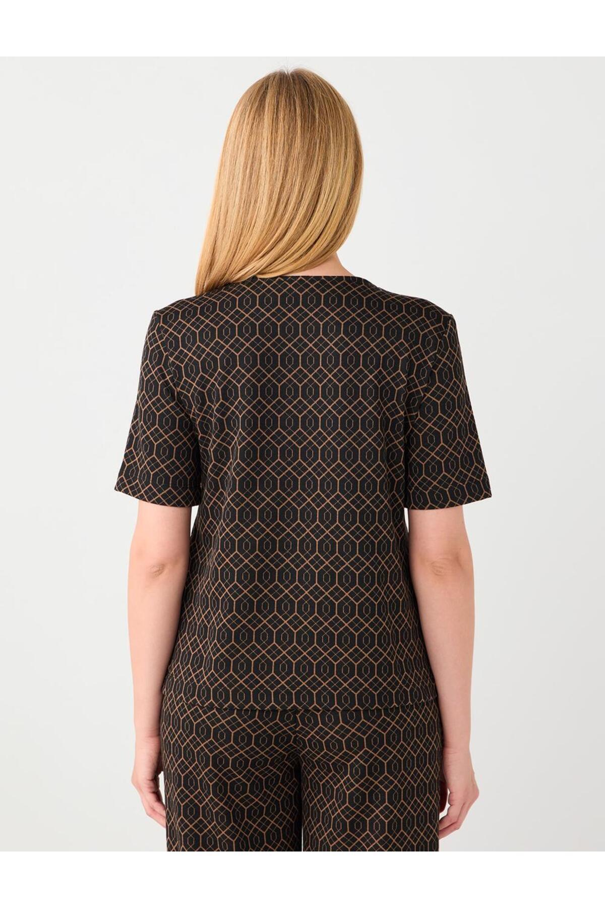 Kahverengi Kısa Kollu Bisiklet Yaka Geometrik Desenli Örme Bluz Kahverengi Kısa Kollu Bisiklet Yaka Geometrik Desenli Örme Bluz 5WW035344 XL