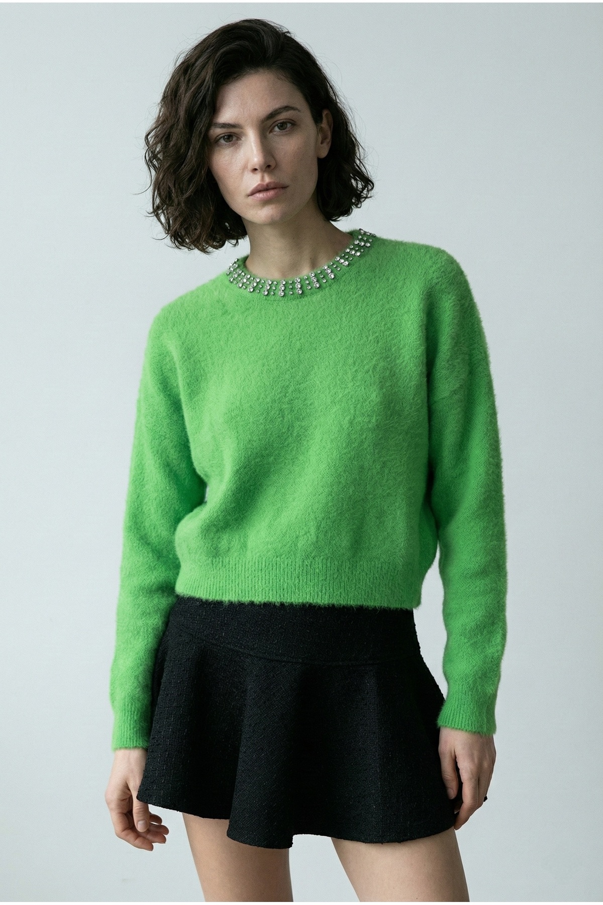 Etnik Desenli V Yaka Çiçek Detaylı Triko Kazak Etnik Desenli V Yaka Çiçek Detaylı Triko Kazak WM1289 S/M